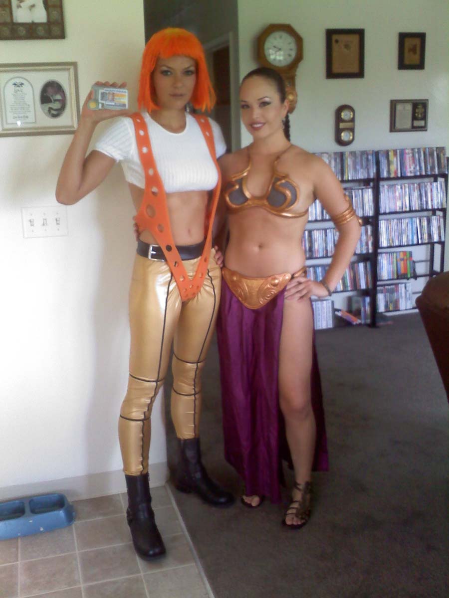 There are so many pictures floating on the Internet of newly single Adrianne Curry, but for some reason I did not have her pictures very long on the site… Here is famous Twitter model Adrianne Curry getting it on with some half naked blonde chick. They’re both dressed in their slutty Star Wars nerd costumes, which makes it that much hotter. If it means that I’m going to be getting more lesbian-ish shots like this, I’m glad her marriage fell apart because she made the first step of taking half naked pictures of herself in bathroom mirror. Good times.