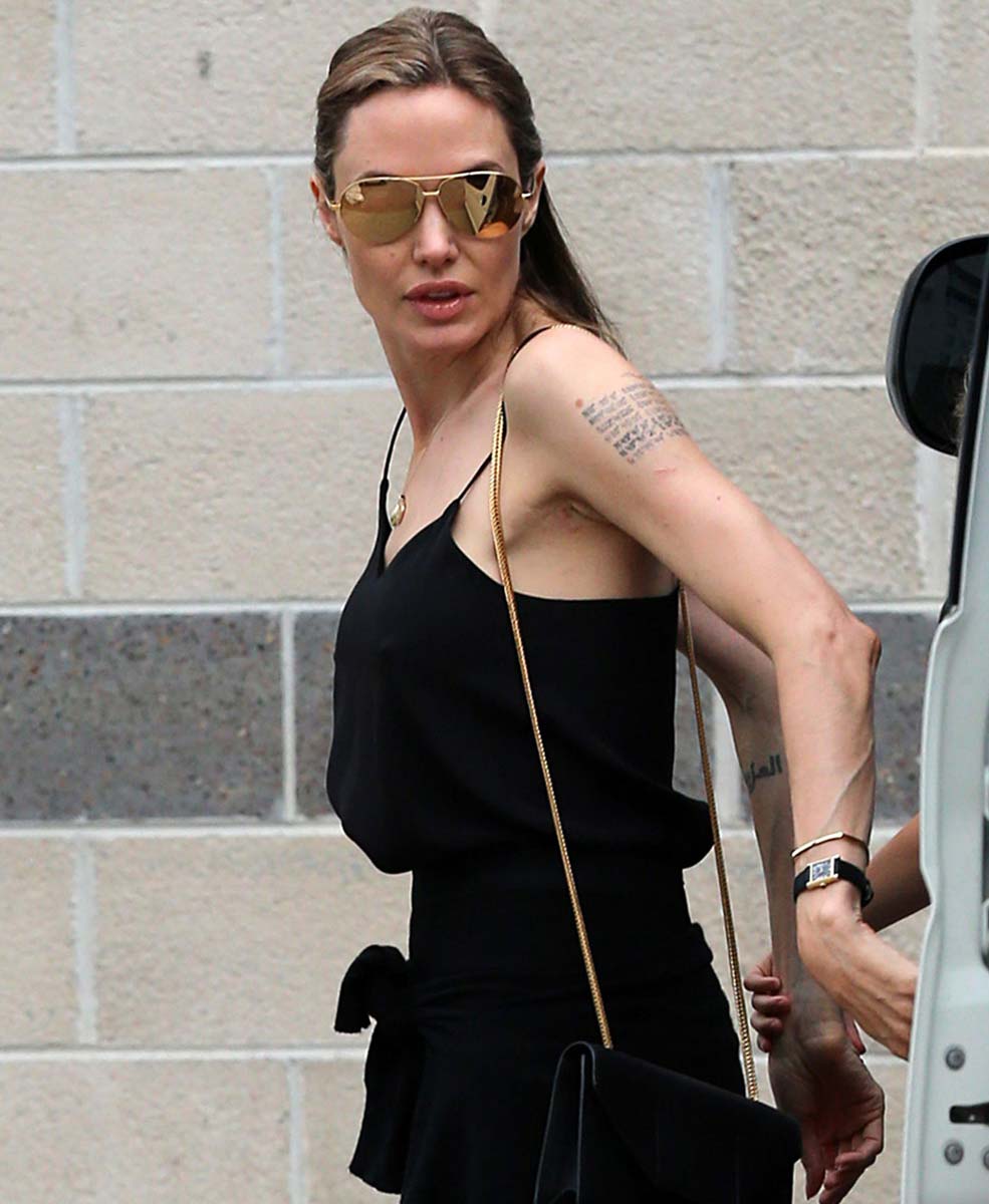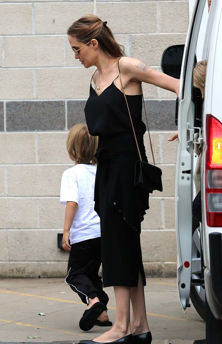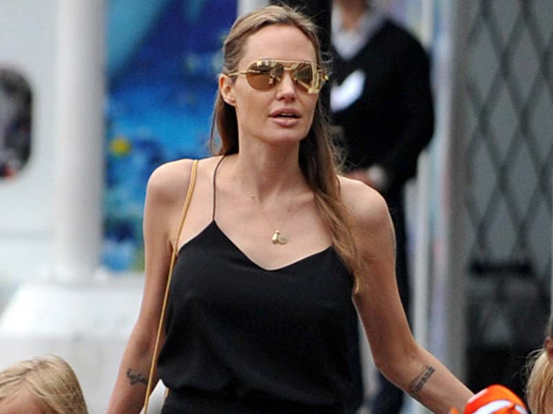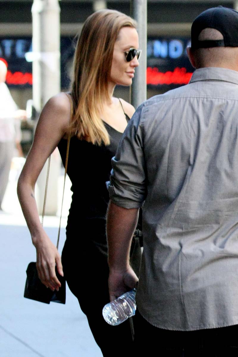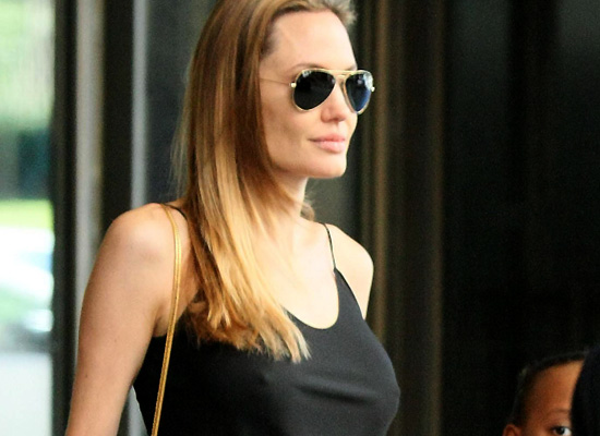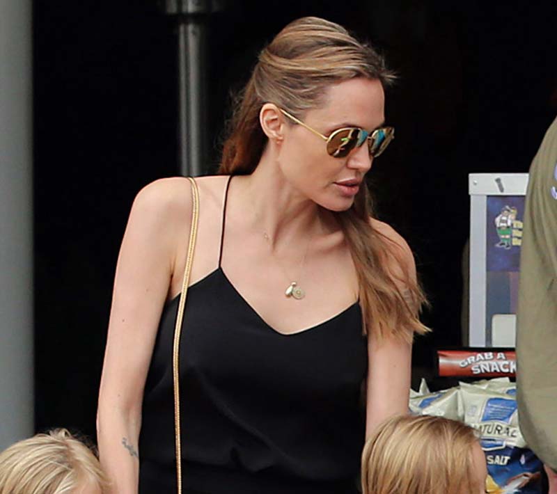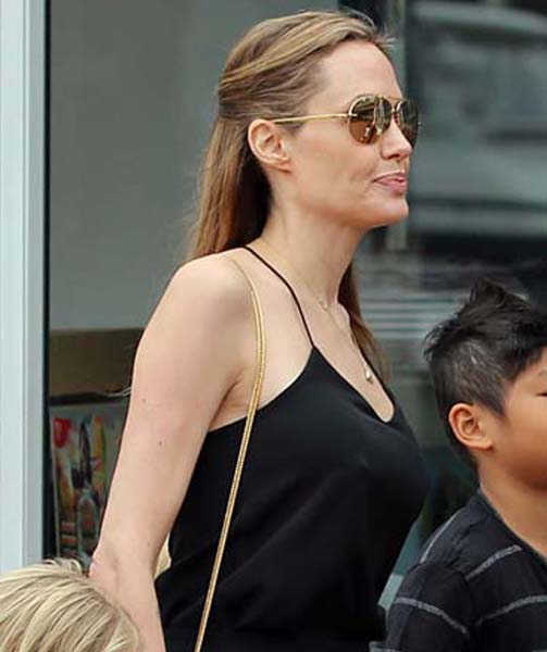 Angelina Jolie was looking dangerously pokey as she left luxury department store David Jones with her kids. Angelina recently underwent a preventive double mastectomy after learning she had an 87% risk of developing breast cancer. She appears to have fully recovered and healthy. Now she get new boobs, and it seems to me that they look bigger! In any case, she looks fine as wine, so sexy!
