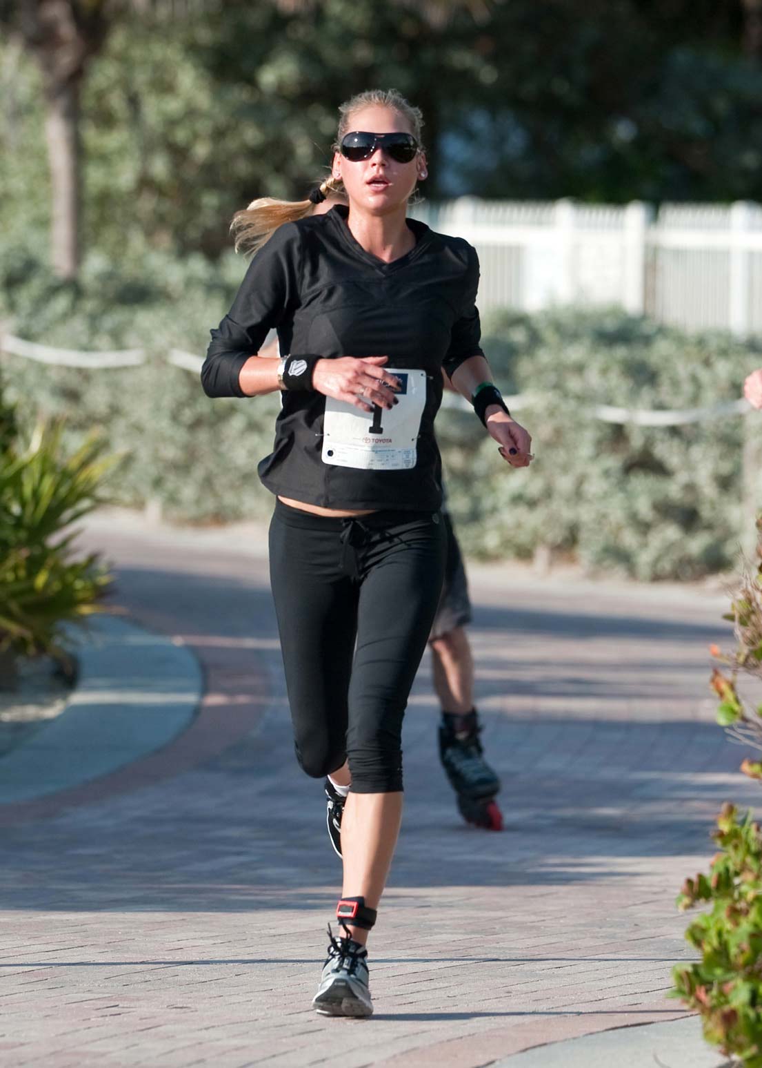 Anna Kournikova has decided to take part in yet another sport…. Here she is running the Nautica Triathlon in South Beach .She’s wearing a nice little spandex outfit that highlights her tight ass so I’m sure a lot of guys won’t be too quick to pass her…