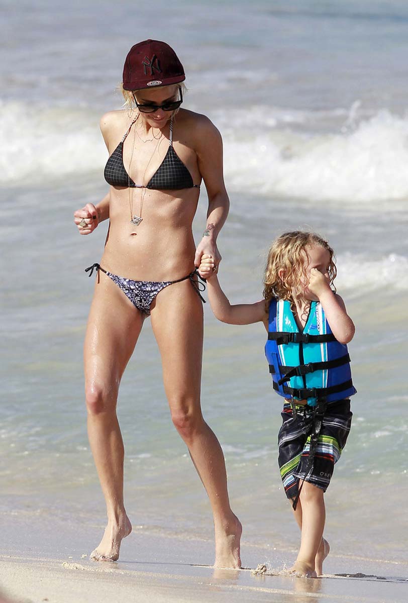 It’s pretty rare that I find pictures of Ashlee Simpson that are sexy enough to put up on the site, but that’s exactly what’s happening today. Here are some pictures of Ashlee Simpson hanging out in her skimpy bikini at the beach the other day and if you ask me she is looking pretty damn good here. It’s nice to see that at least one Simpson sister feels the need to stay skinny, but it’s just too bad it’s the wrong one…