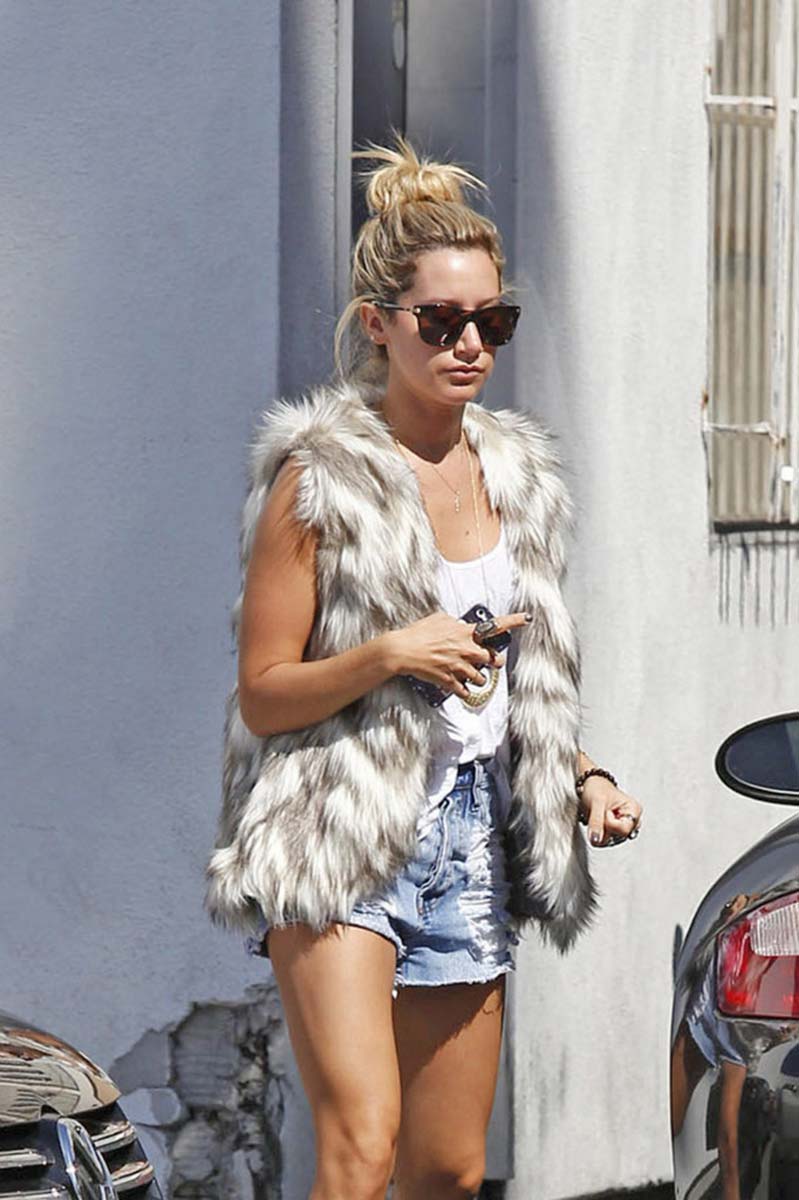 Here is Ashley Tisdale doing what she does best yesterday afternoonin and that’s nothing but looking sexy as fuck while showing off her ridiculously sexy little stems in ultra short shorts… I’ve made fun of Ashley Tisdale nude for being facially-challenged in the past, but between all the short shorts, leggings and bikini posts these past few weeks, I’m really starting to come around. But that’s no reason for Ashley to stop trying to prove me wrong. Keep ’em coming, please.