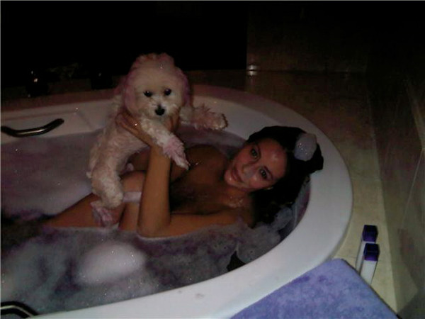 About a week or so ago Aubrey O’Day was bitching about some topless pictures from her peepshow performance that were leaked on the interweb, saying she wasn’t happy about it and all that bullshit….Now here she is, in her own leaked twitter pics, in the bath tub and flashing her ass in a thong. I guess all the attention she got wasn’t that bad after all. I like her bad stripper tan lines on her ass, it makes me realize I can afford a lap dance.