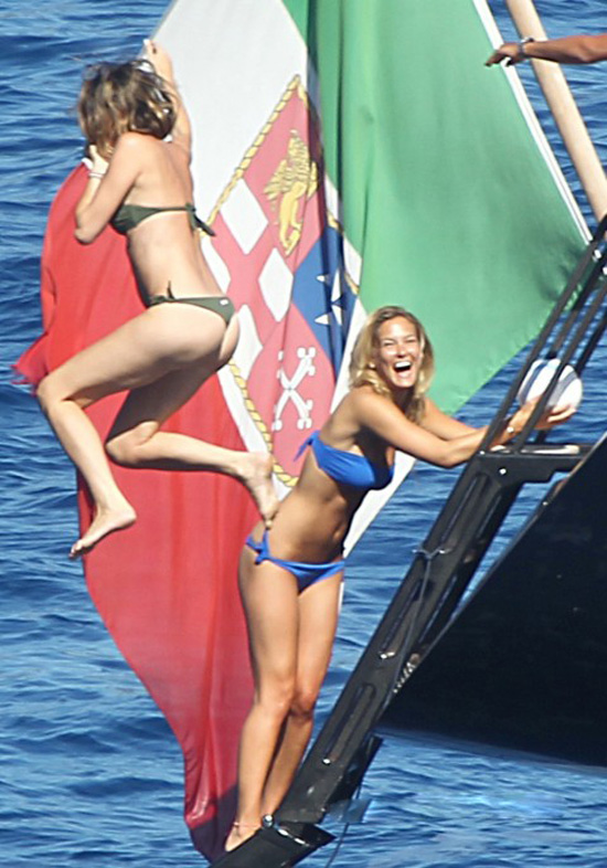 I’m not religious, but thank God for supermodels. Here’s supermodel Bar Refaeli on vacation, on a yacht, in a very small bikini while she lets the sun feel her up with its rays. Lucky son of a bitch. This is almost too good to be true, normally there’s a two drink minimum and a steep cover charge if you want to see this kind of thing. I can’t believe it, these are quite possibly the hottest celebrity bikini pictures of the summer. Bar Refaeli just loves climbing up on that boat and we love watching her… Amazing