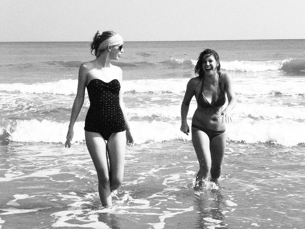 I think I had just a few pictures of country singer Taylor Swift on the site, I don’t know why, she is hot, but she seems pretty boring… Today I thought it might be nice to post some pictures of a classy young celebrity, without her breasts hanging out or her lady junk exposed through her bicycle shorts, but I was wrong. I’m bored out of my mind. Here is Taylor Swift hanging out on the beach with a ladyfriend, frolicking in the ocean and showing off her figure in one of those antique 1920′s bathing suits that don’t belong on a hot body like this. Sure she looks good and all, for a country singer, but…
