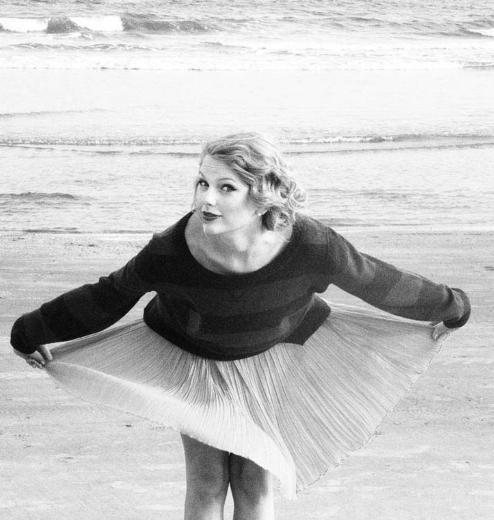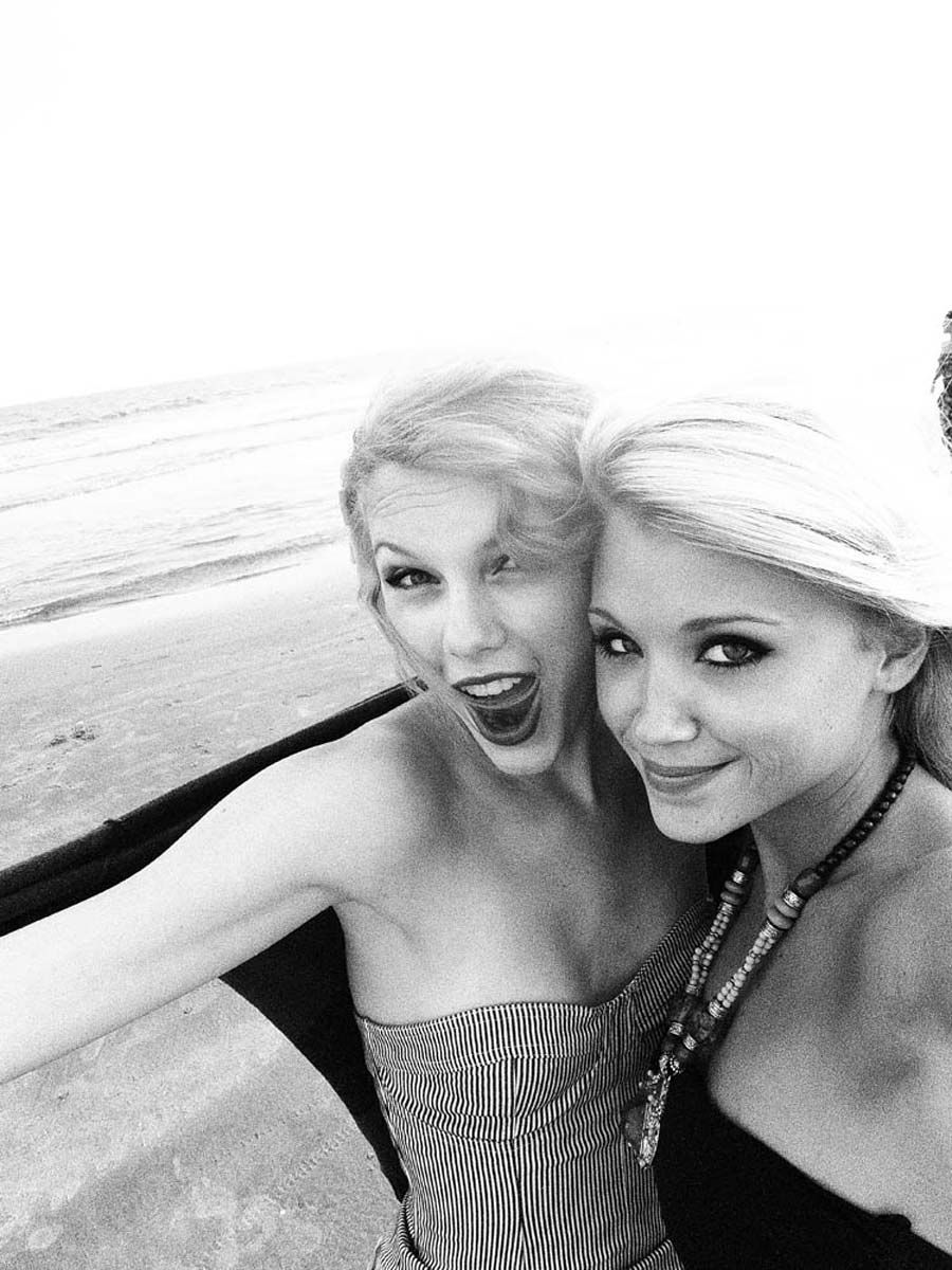 I think I had just a few pictures of country singer Taylor Swift on the site, I don’t know why, she is hot, but she seems pretty boring… Today I thought it might be nice to post some pictures of a classy young celebrity, without her breasts hanging out or her lady junk exposed through her bicycle shorts, but I was wrong. I’m bored out of my mind. Here is Taylor Swift hanging out on the beach with a ladyfriend, frolicking in the ocean and showing off her figure in one of those antique 1920′s bathing suits that don’t belong on a hot body like this. Sure she looks good and all, for a country singer, but…