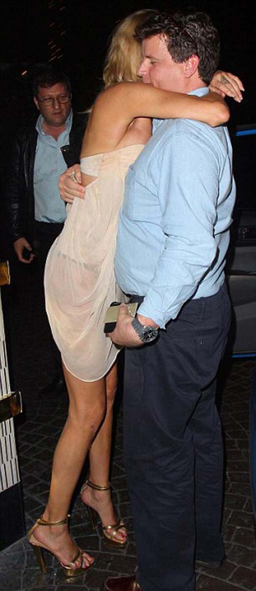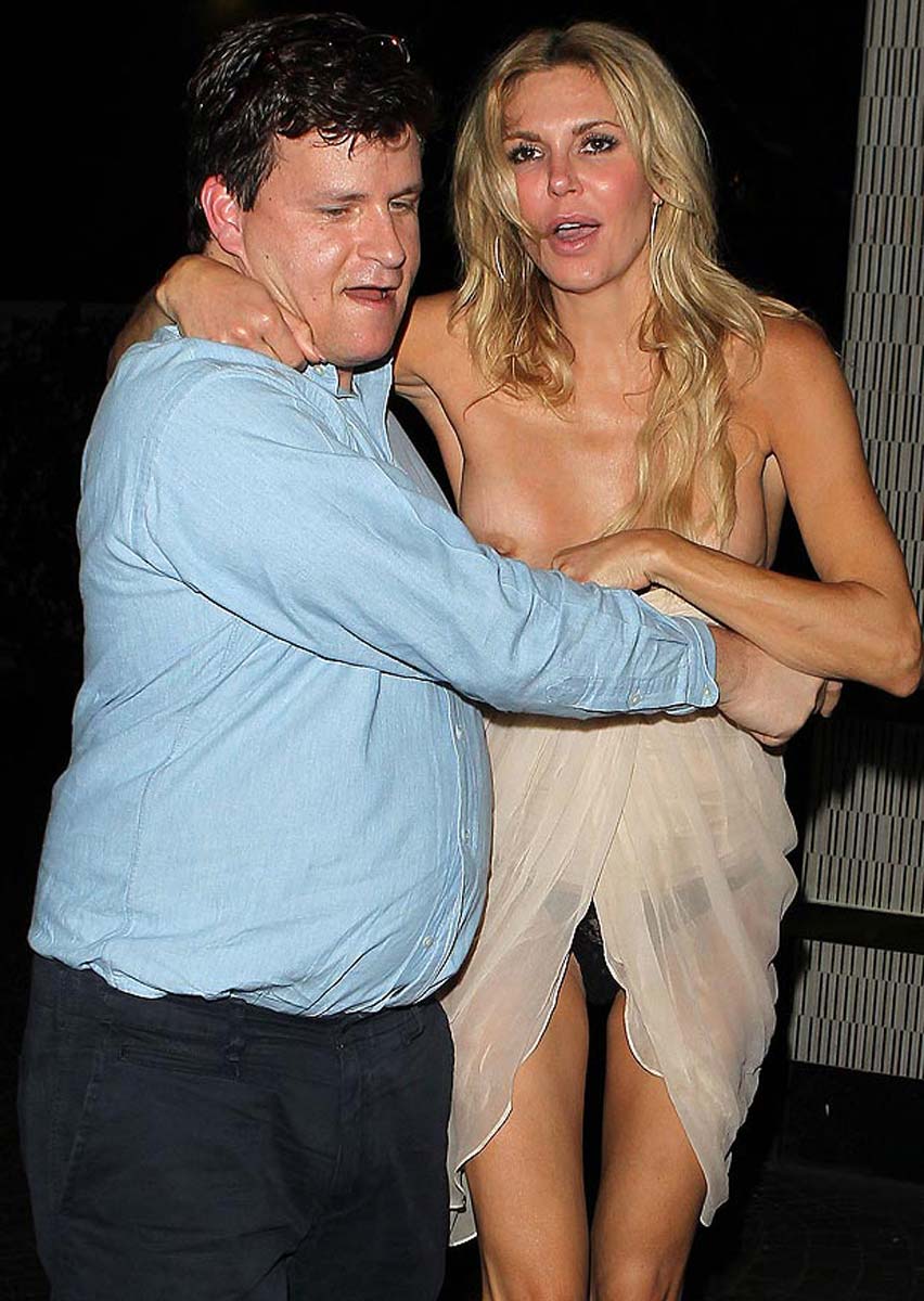 I don’t really know all that much about this Brandi Glanville lady, other than the fact that she usually looks pretty damn good and that she was married to that douche that dumped her for LeAnn Rimes. Here she is looking totally drunk as she did get out of her cab last night outside the London Hotel unable to walk or keep her barely there dress covering up her thong and breasts and all the while she adheres to some fat guy. I’m not sure she’s exactly making her children proud. At the same time, as long as she’s flashing, it’s not like I’m not looking. An opportunity wasted really is a sin. Enjoy.