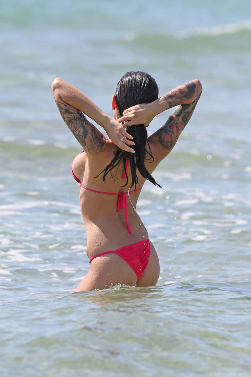Here is super busty and tattooed model Cami Li showing off her rockin’ body in Miami. I don’t know too much about her other than she gets a lot of work in alternative magazines and was recently engaged to a former TOWIE star, which is a shame because I was going to ask her to be my Twitter girlfriend. Her lost! Anyway, that shouldn’t stop her from following me on Twitter and sending me some nude selfies. I know I can do more for her career than some dude on a show that I’ve never heard of.