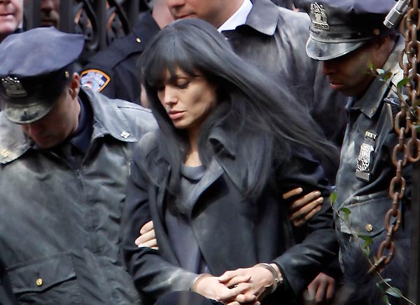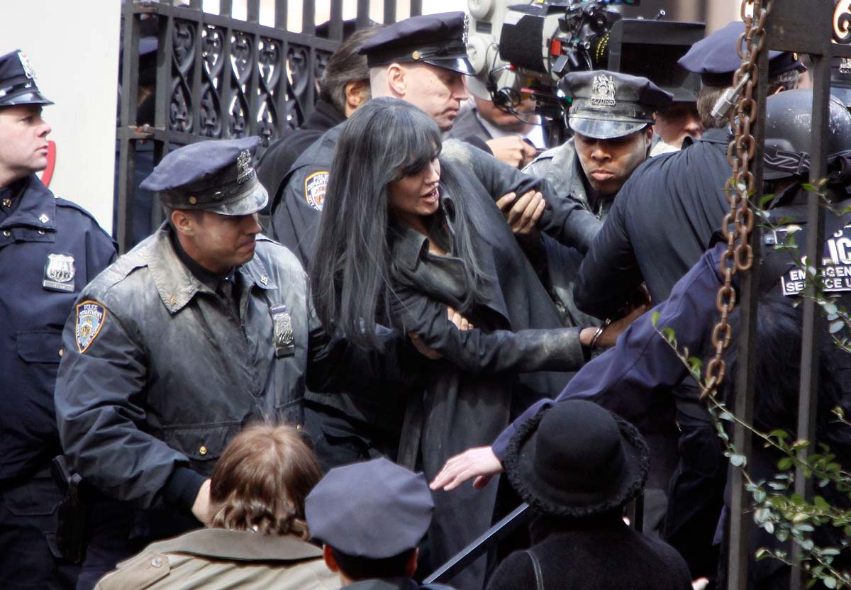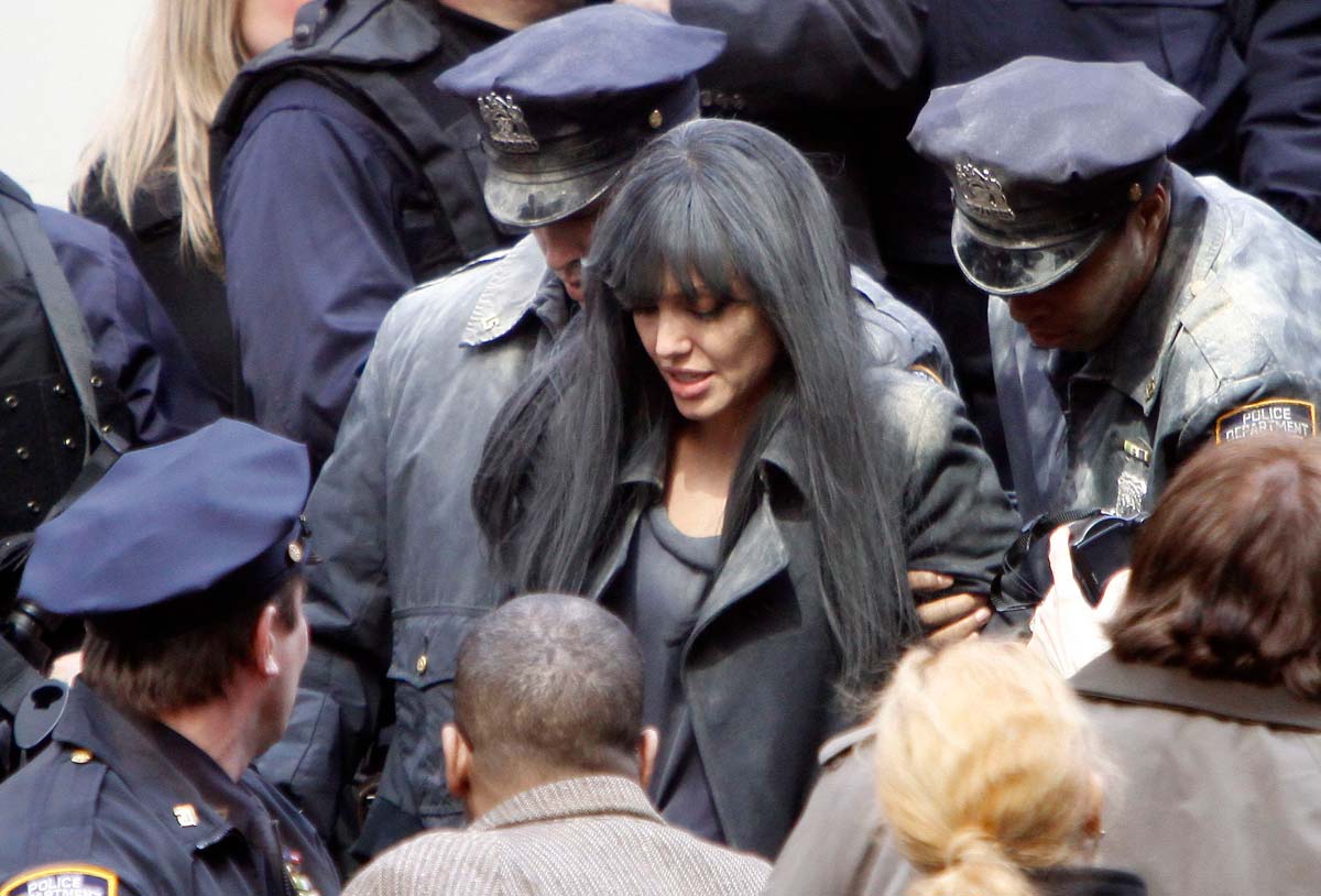 No, that’s not Angelina Jolie sexy celebrity MILF being arrested! It’s her shooting from movie ‘Salt’. She probably plays some crazzy person again, she used to do it while she was celebrity teen, and skiped a crazzy girl roles for a while, but now its time from new crazzy MILF roles of Angie …