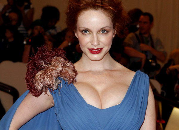 Here is the best celebrity cleavage and Christina Hendricks at the Costume Institute Gala Benefit last night.I think she took the “Costume Gala” thing a little too seriously, because she looks like she picked up her dress and makeup at a costume store.She looks a bit like a zombie or a ghost,but there are Christina Hendricks big tits to improve the situation as ever!Enjoy