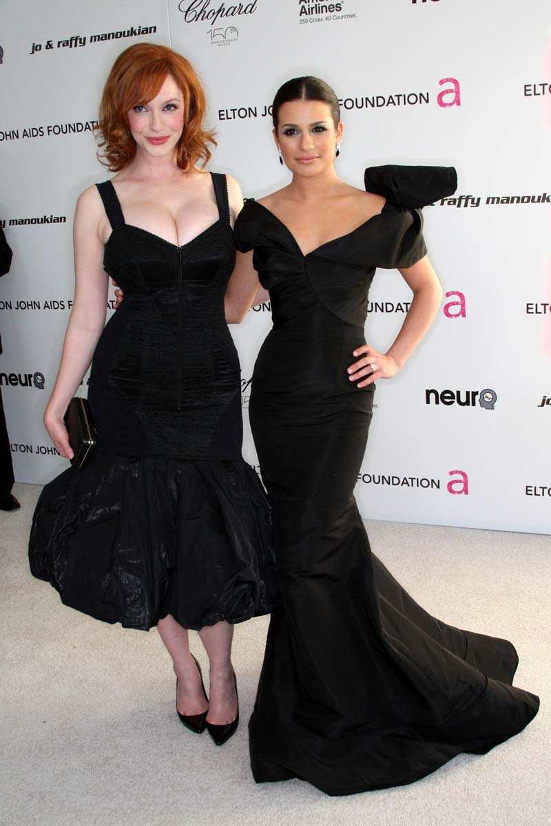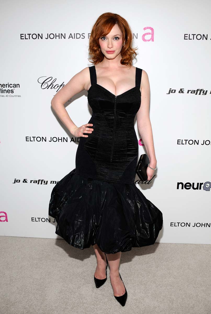 Mad Men actress Christina Hendricks shows off her assets at the 2010 Elton John AIDS Foundation Academy Award Party…Christina Hendricks has nothing to do with the Oscars, but I’m glad someone had the foresight to invite Christina and her huge breasts to the party. Seriously, what’s an Oscar party without a busty ginger walking around with her ugly husband? I’ll tell you what it is, a shitty party…
