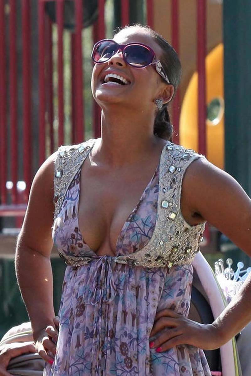 Christina Milian was spotted giving daughter a playful push on a swing in a park in Los Angeles and as you can see her tits are now even bigger…For the life of me, I can’t even remember why Christina Milian is famous. Was she an actress, or a singer, a wannabe at both? I have no idea but judging by these pictures she is back in form and I expect very soon some extremely hot work of this absolutely gorgeous mom…Hot!!!