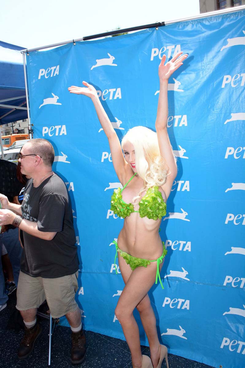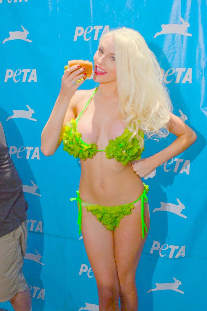 It seems that Courtney Stodden finally got some job and I can tell you that she made a pretty serious case for herself with this dumb PETA publicity stunt. Here she is looking all hot and super busty in some lettuce leaf bikini. I have to admit, I’m impressed. Courtney even made me want to eat a salad for the first time in my life. And trust me, for a blogger, that’s very unnatural. Enjoy the photos.