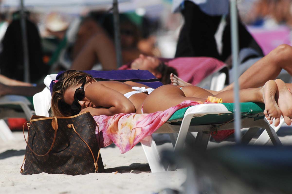 When I have the opportunity to get some of my Italian girl in a thong bikini playing in the ocean I realize how happy man I am. I mean, I work hard and know hot to treat a lady, so I think I deserve something like this every day. Judging from these beach bikini candids the beautiful Italian showgirl is enjoying her vacation and this is a great opportunity to welcome Elena Santarell on my site. The girl is just too damn hot, her big breasts and her perfect little booty really make my day perfect. Anyhow, I highly doubt any of you are reading this crap, so I’m just going to let you enjoy the show.