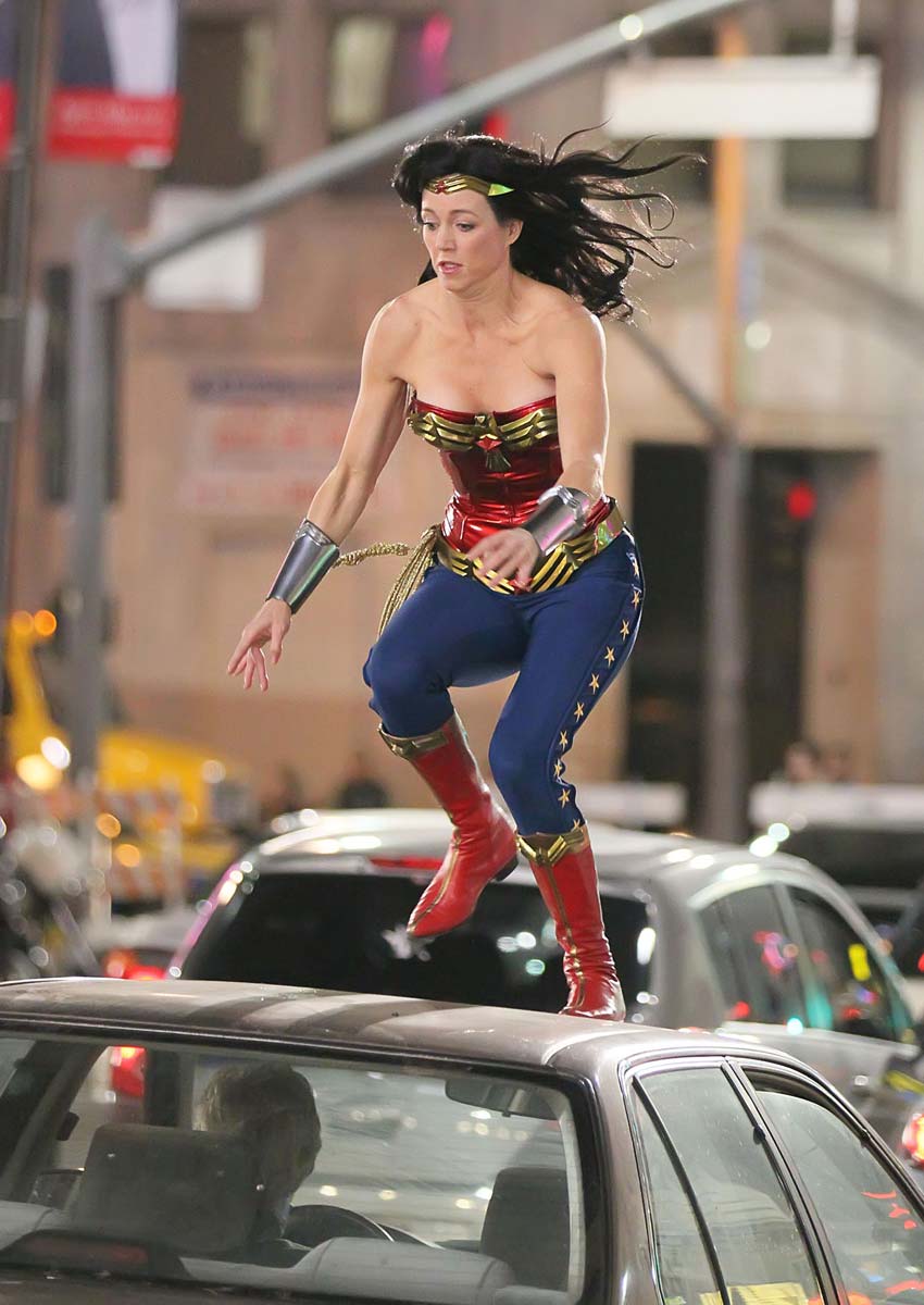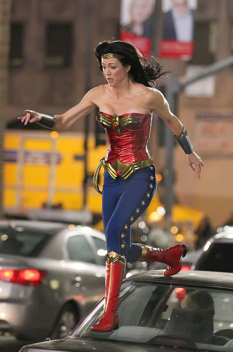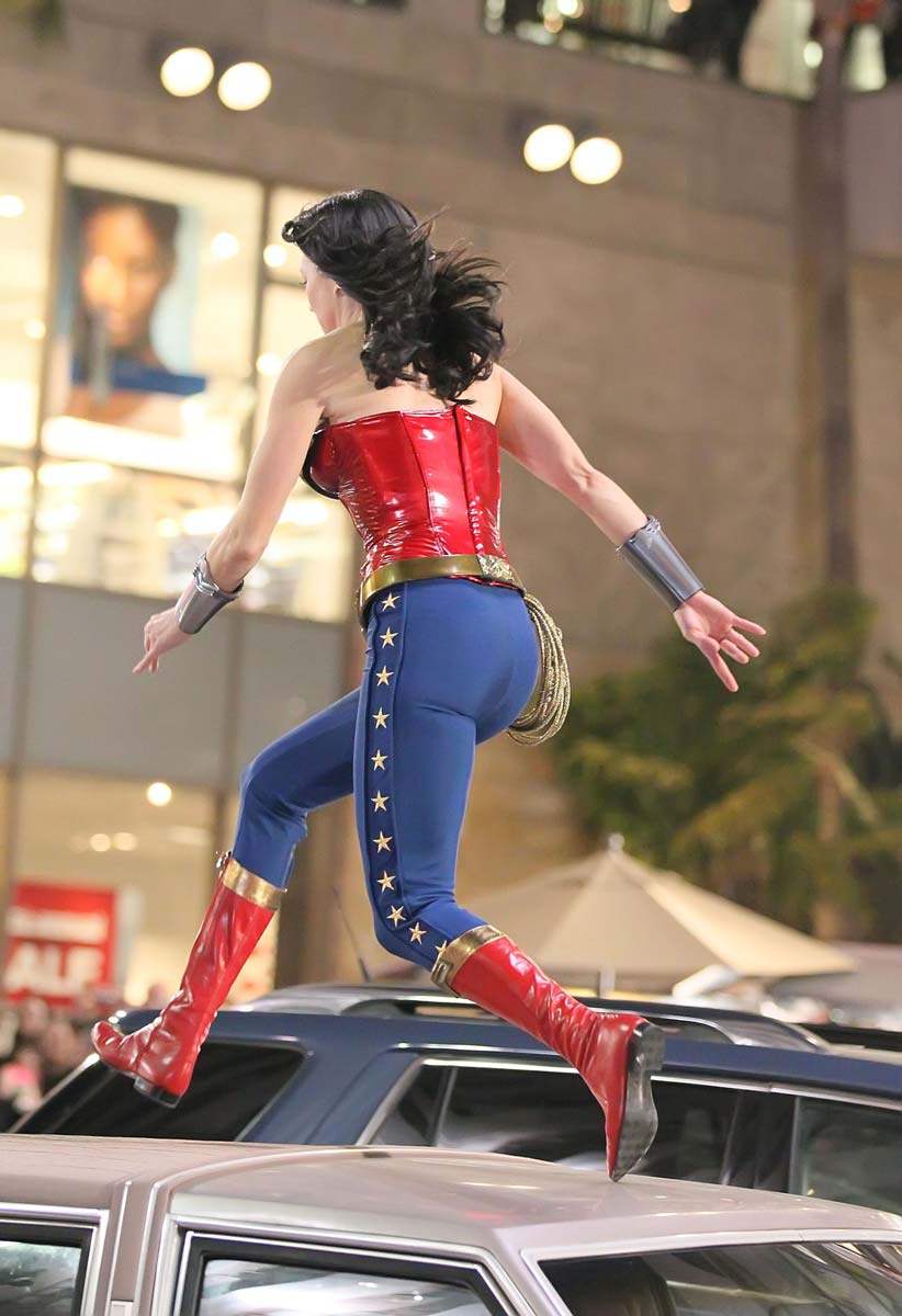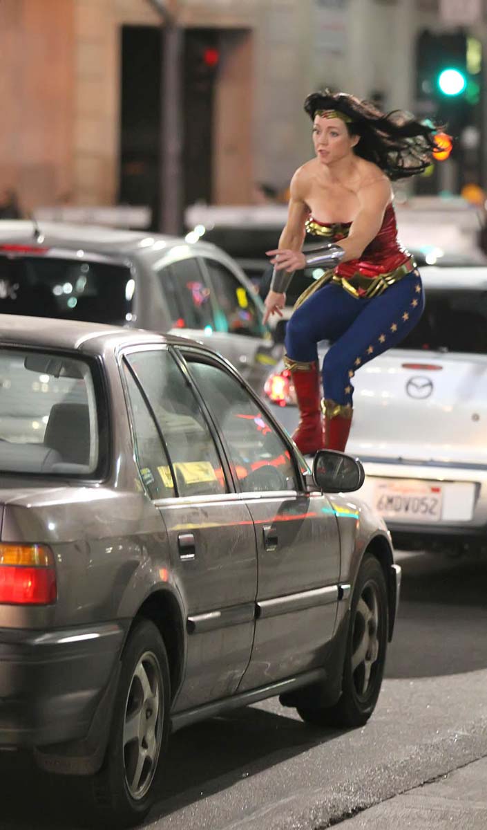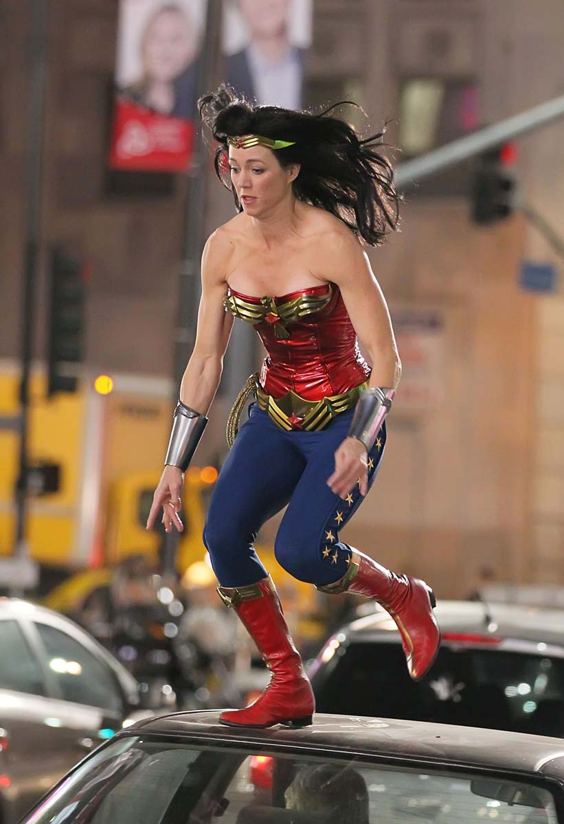 If you are from those who were really excited for the new version of Wonder Woman to come out, you will be quite pleased with this images and you’re going to love these Adrianne Palicki shooting scenes in Los Angeles. Here’s Adrianne Palicki as Wonder Woman on the set of the upcoming TV show, ready to pounce on some lucky criminal, and looking pretty good. I heard a lot of negative comments of costume and on the choice of girl, but you have to admit that she has everything we need, big boobs and hot booty, in the end everyone just staring at it. Seeing Adrianne Palicki running around decked out in the Wonder Woman ensemble sure is bringing back some happy, yet awkward memories. I’m not sure I’m down with the new costume, kind of has a Halloween tranny tinge to it, but if the lady has the lasso, she’s still got her rope around my lower half hearts. Enjoy.