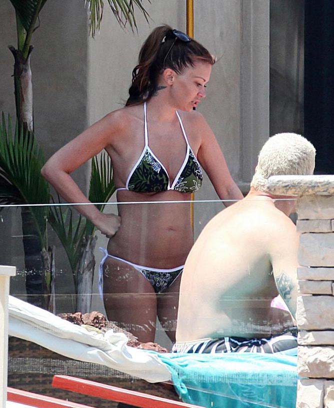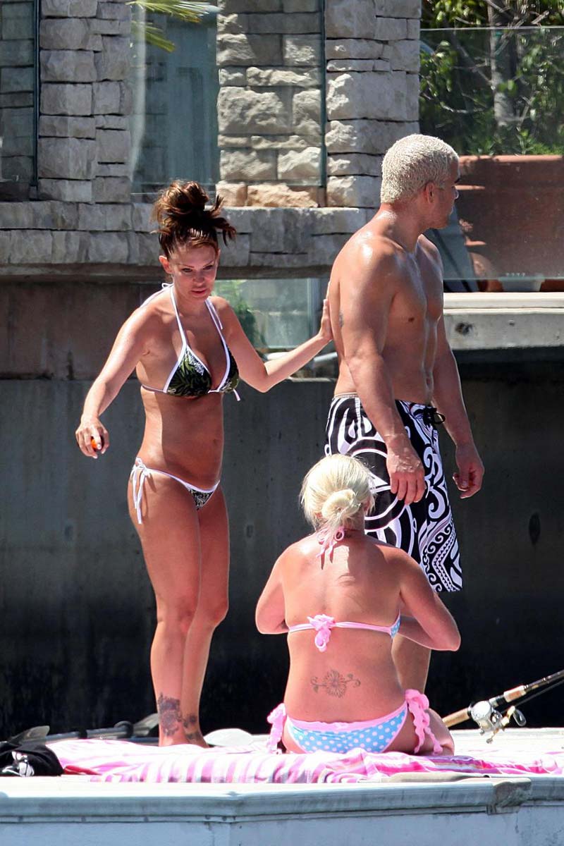 I don’t know much about keeping fit after giving birth, because I’m a male and don’t have to worry about garbage like that, but I thought Jenna Jameson just popped out a pair of kids like a month ago. Here she is showing off her tight pornstar body in a little bikini with her massive douche and her hot friend. I guess banging a half dozen dudes at a time is a good way to stay in shape. I’ll have to take her word for it.