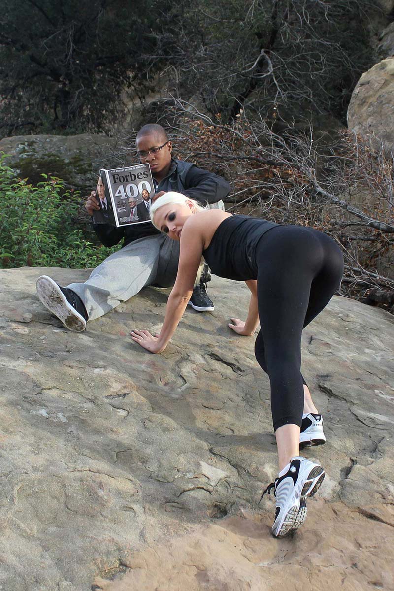 Ok we realized you desperately crave for attention.Come on,who the hell jogs with an umbrella and a Fortune magazine?I think I beginning to hate this attention whore because they become a sluttier version of Heidi Montag and her stupid husband.The only thing I like here are Karissa Shannon tits and hot ass in spandex while she bends over .