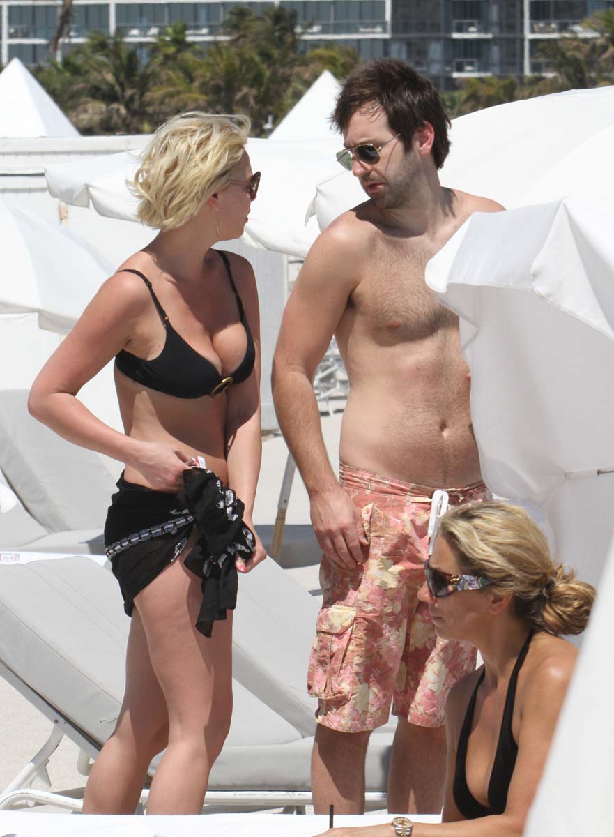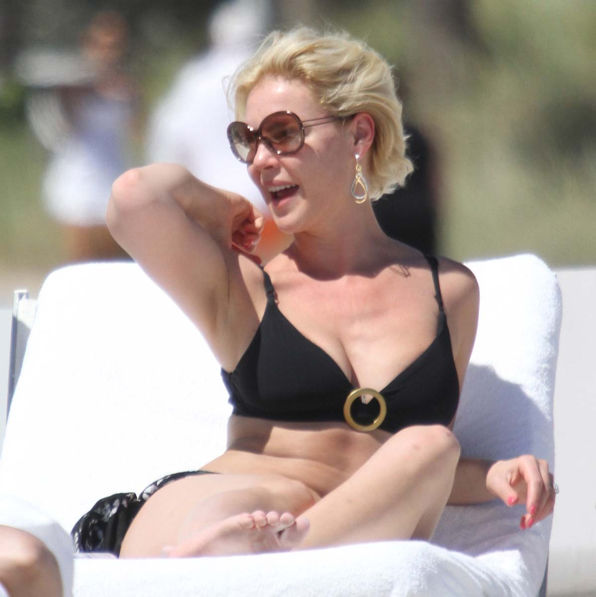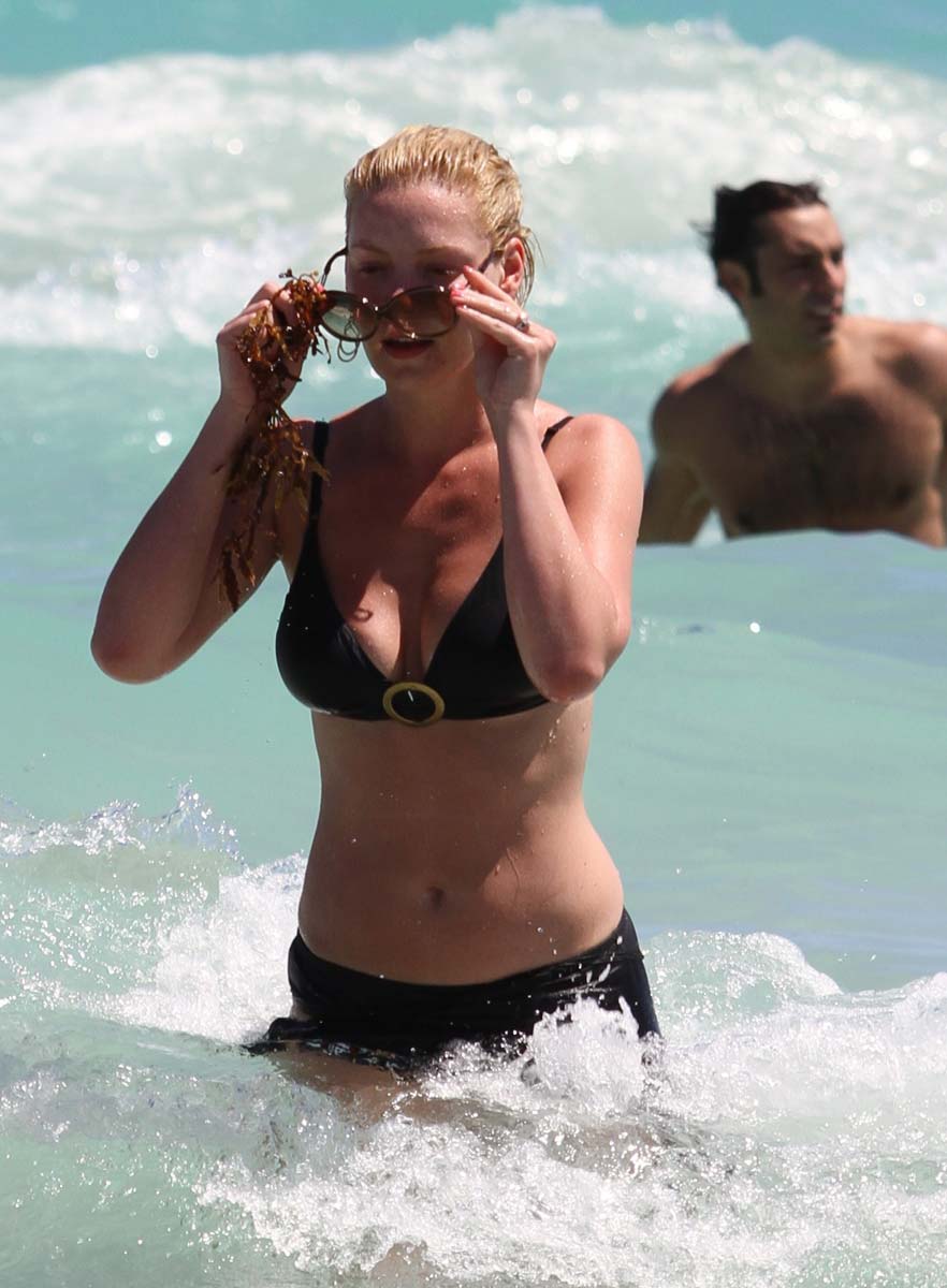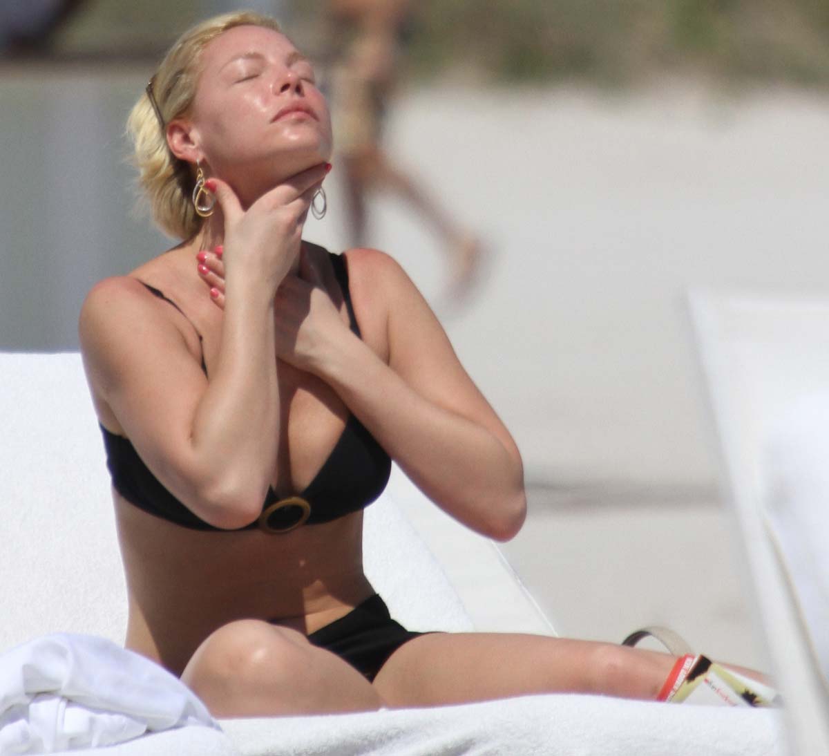 I don’t know how old is Katherine Heigl but in any case, these pictures show her body which seems certainly much older than it should. She was photographed while smoking a cigarette in a bikini, so if you’re into frumpy smokers bodies, you’re going to really like these shots. However, here she is hit the beach in Miami in her little black bikini. If I knew that she has over 40 years I would definitely say that she looks hot especially because Katherine Heigl boobs aren’t all that bad either… Hope she takes off the wrap during this trip, so we see a slightly better picture and overestimated if is Katherine Heigl hot or not….