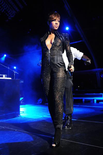 After last week’s discussion Keri Hilson and Chris Brown are not dating,so she will not be new Rihanna !…Dismissing early reports over a photo taken in Miami over the weekend and the two reportedly “grinding up against each other,” Hilson told fans on Twitter “We ain’t datin’”….Whatever,here she is performing in some hot outfit and showing of great big cleavage.