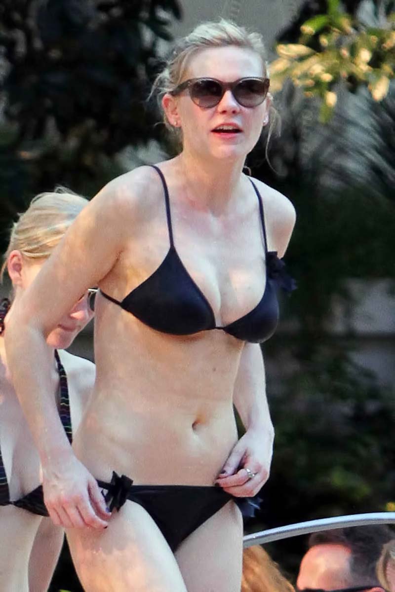I’ve never been a huge fan of this babe, but recently I had some Kirsten Dunst naked video, so I realized that she has some pretty damn awesome pair of big tits on her. Today I have these pictures of her Kirsten hanging out in her little black bikini and looking fucking good thanks to those massive breasts. I still can stand the sound of her voice, bit if she promises to keep her mouth shut I think we can work something out. Enjoy this Kirsten Dunst bikini gallery.