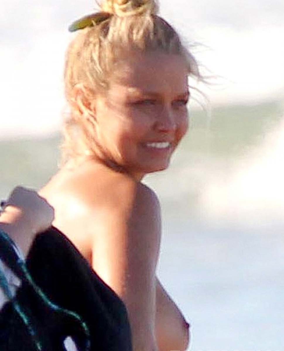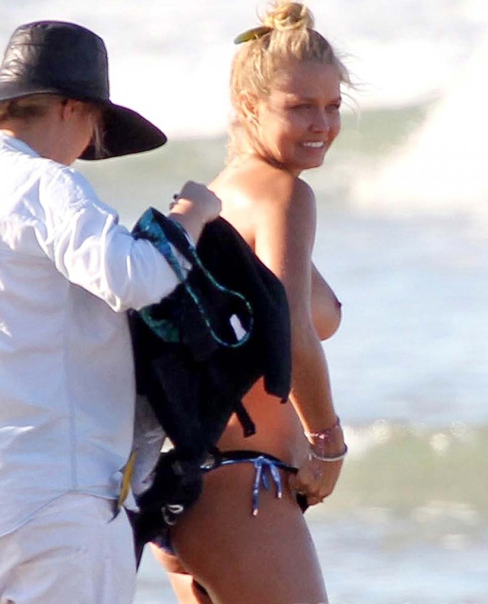I keep forgetting who this Lara Bingle chick is, I know I’ve had her hot little body on the sight before, but the name doesn’t ring a bell. I guess it doesn’t really matter if she’s going to be prancing around topless in the ocean in her little bikini. I probably made some lame joke about her bikini body making my pants tight or something along those cheesy lines. Anyhow, here she is showing some skin in some topless bikini photoshoot on the beach! Keep going Lara, I suppose we will have some nudes soon! Enjoy this hot Lara Bingle topless gallery!