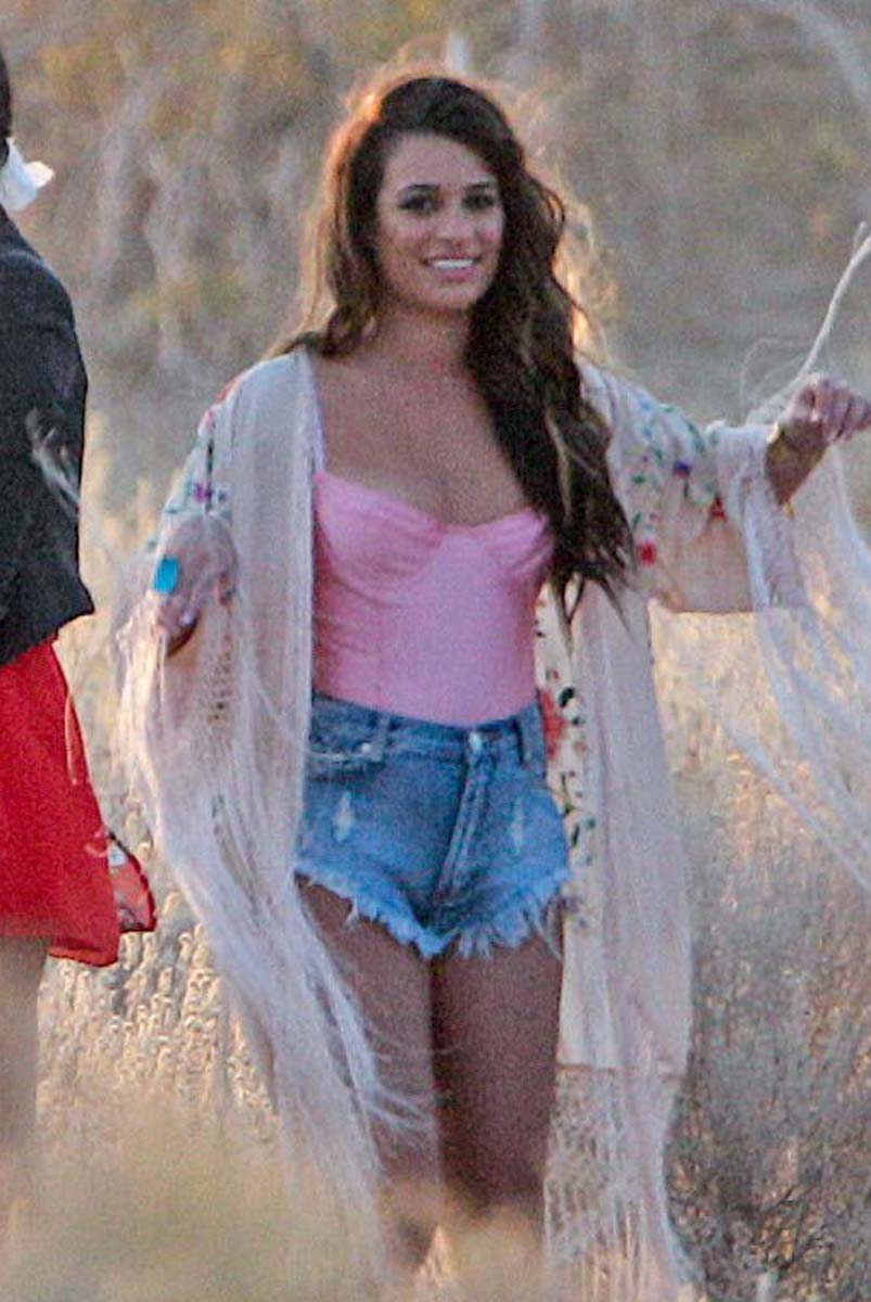 Here is Lea Michele flashing her nipple while shooting her new music video! I didn’t realize Lea Michele was an actual singer, I always thought she just played one on that crappy TV show I never watch. Sort of like how I pretend to be a real journalist. Anyway, I guess I was wrong though, because here she is rocking a sexy swimsuit on the set of her new music video. It’s just too bad Lea’s face doesn’t match her body, because otherwise she could’ve become one of my favorite new acts. You know, as long as I didn’t have to ever actually listen to her music or anything. Enjoy the view!