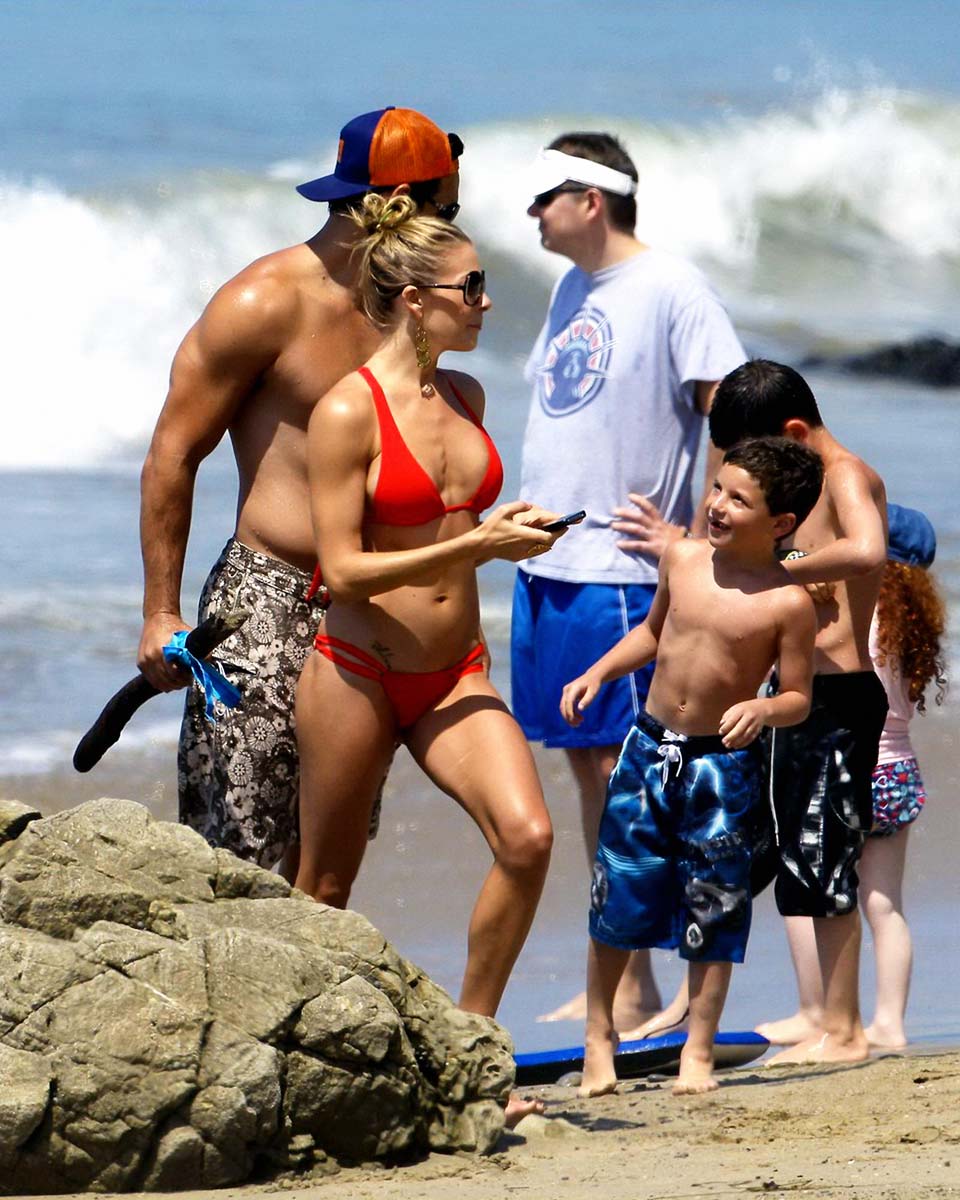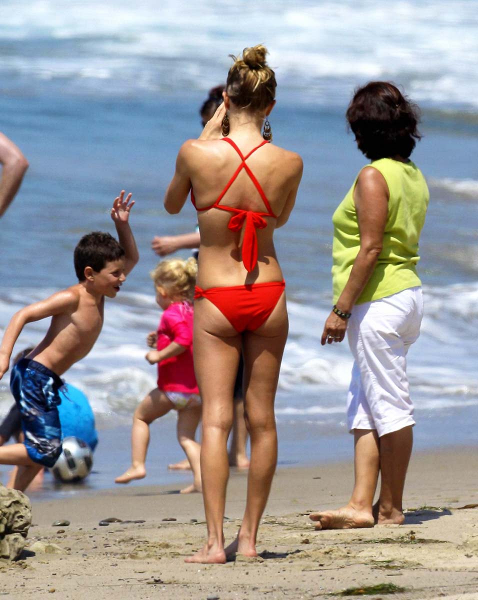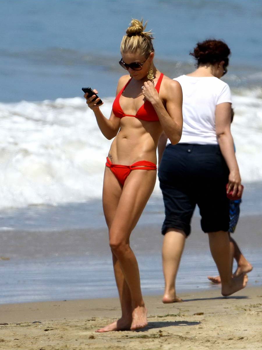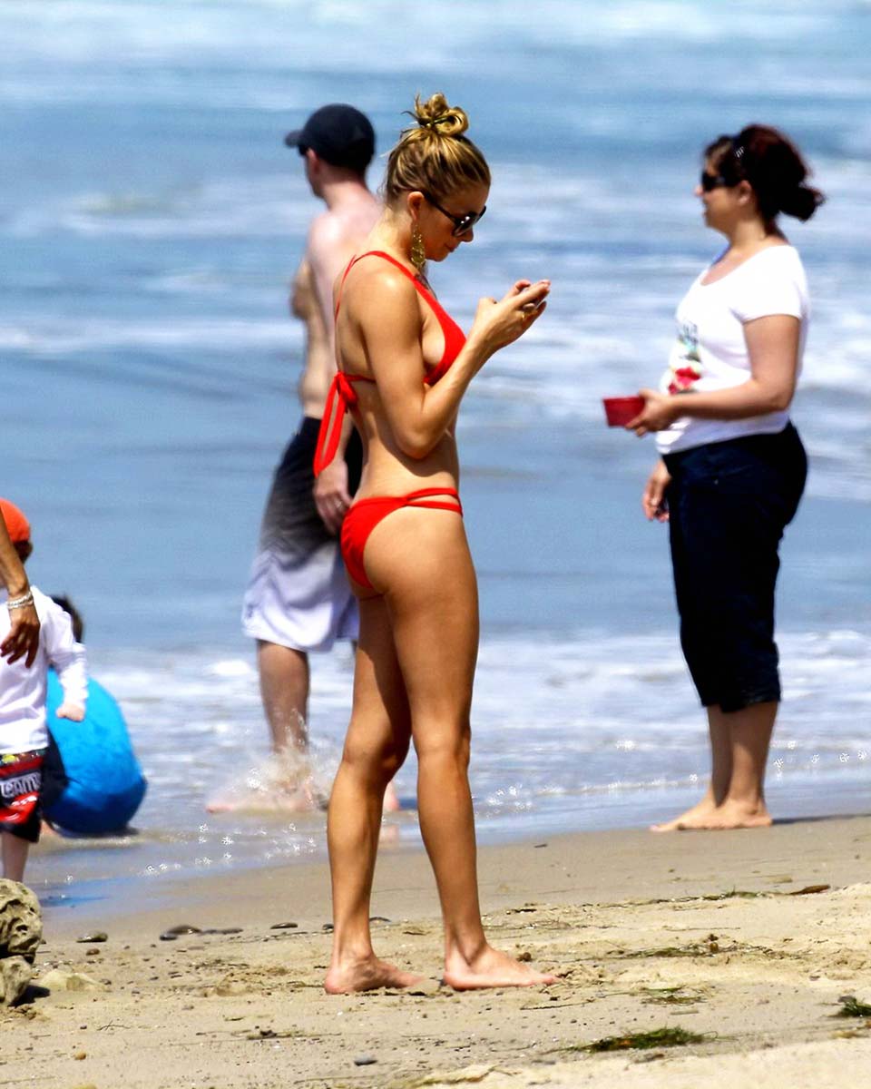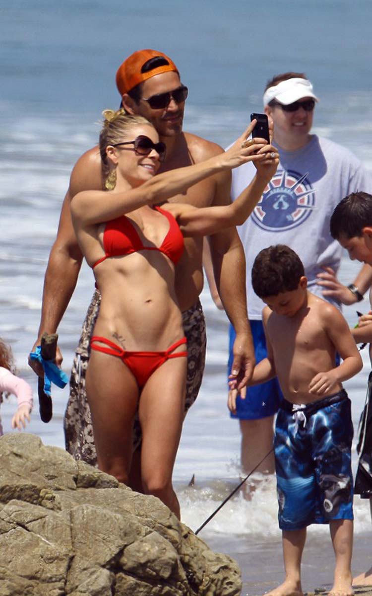 Usually I don’t think that LeAnn Rimes is all that hot, at least I used to think that way until I saw these LeAnn Rimes bikini pictures. You may have noticed that I put her pictures on the site only when she is only half-naked. Here she is on the beach in her little red bikini showing off an amazing tight body. Awesome. Don’t get me wrong, her face is still kinda gross, but with those big sunglasses on an that sweet bikini ass who cares. So, sunglasses and little bikini are the winning combination for her but for all of us too. Somebody cover her in baby oil. Call me