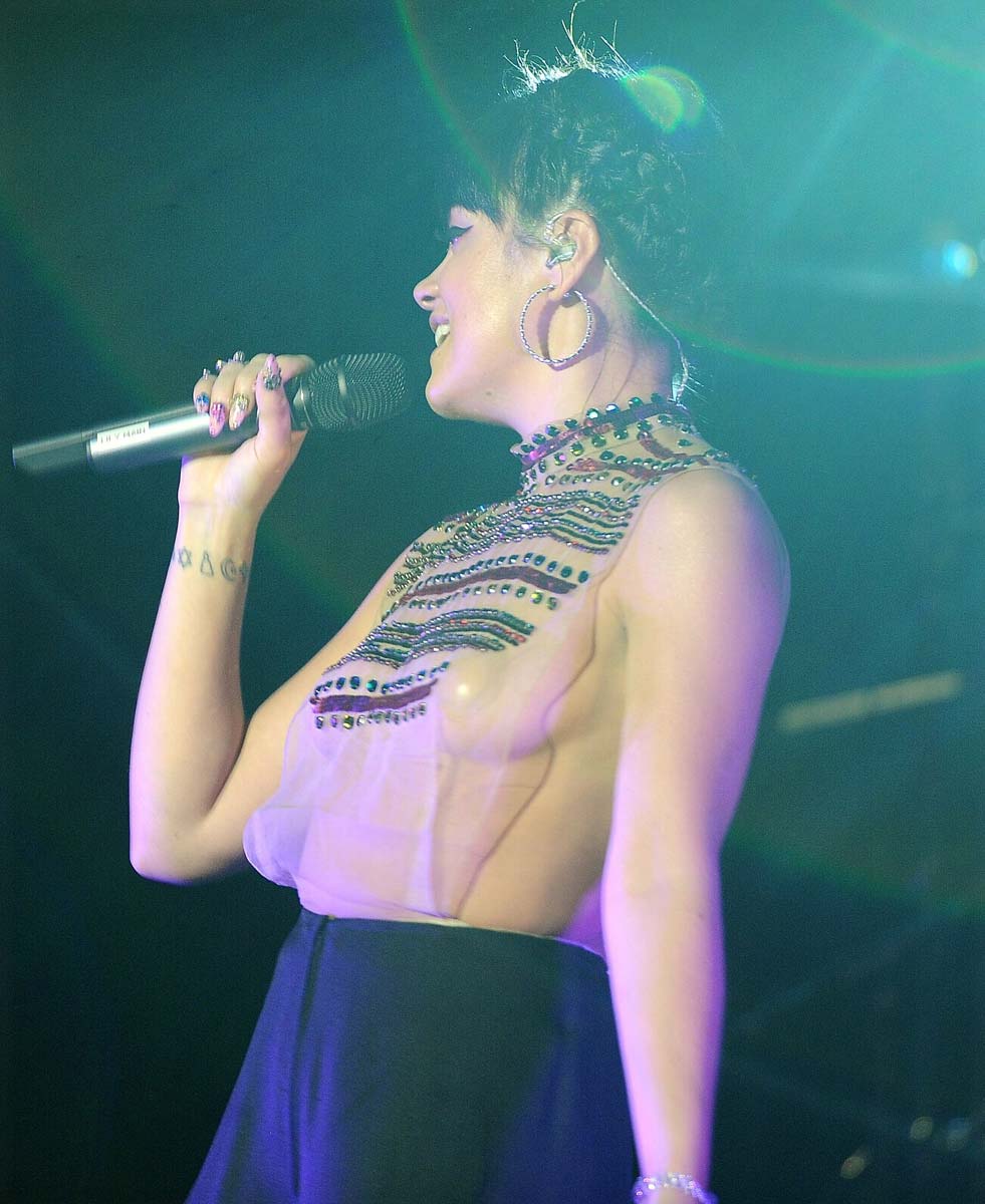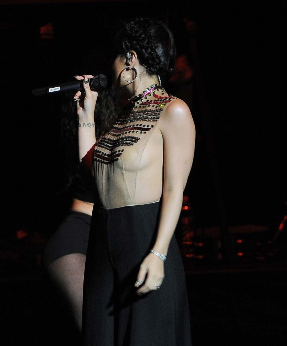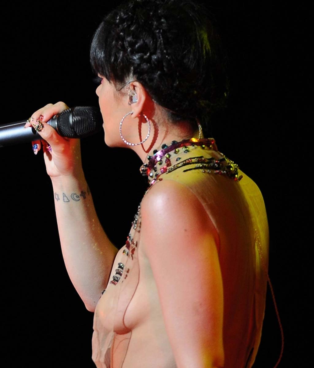 Here is hot Lily Allen sideboob flash in see through top, while performing at a charity event. She definitely gave attendees an eyeful on stage. Lily Allen showed us she is not afraid to show some skin, but she avoided having a Kendall Jenner moment by covering herself up with nude-colored pasties. Lily Allen is a natural kind of gal. Naturally vocally talented, naturally used to working in the entertainment business, and naturally letting her funbags just kind of hang out. So, lets just enjoy the view!