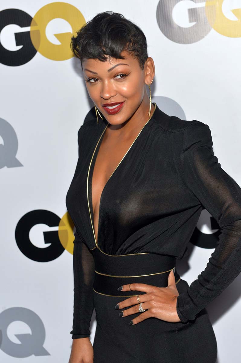 Meagan Good may not be the most famous actress around, but she is definitely one of the cutest, and while that in and of itself should be good enough to merit a post, Meagan Good’s nipples are definitely good enough to get her some attention. Here she is in a deeply split and quite sheer dress top something of an attention grabber at the GQ Men Of The Year Party in LA and as a result looked very nipply! Don’t you just love how a black dress has absolutely no chance against the paparazzi? I know I do. And that’s why it’s called the “happy flash.” Enjoy the view!