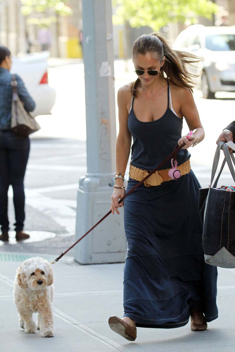 Here Minka Kelly is taking her cute sweater puppies out for a walk in New York City the other day in a nice tank top dress and showing off sweet cleavage. Oh, God how is it possible that she is looking so freaking sexy when she is just prancing around in a long summer dress. If she needs anyone to take care of those little things while she’s out of town, I’m more than happy to puppy sit. I’ll make sure to take them for walks and bathe them and give them lots and lots of love and attention… Call me