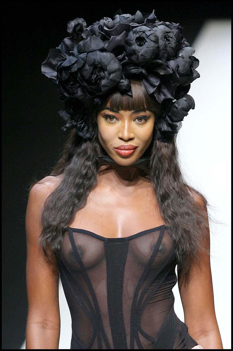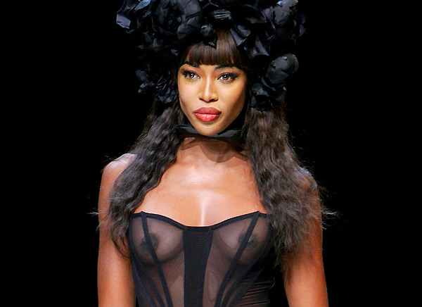 Here’s Naomi Campbell on the runway at the Chapurin fashion show during the Paris Fashion Week, and yes, those are Naomi Campbell’s nipples. She will still get her nipples out in a see-through dress in front of hundreds of people, and the world press. It’s just good to know that the fame and money hasn’t gone to her head.