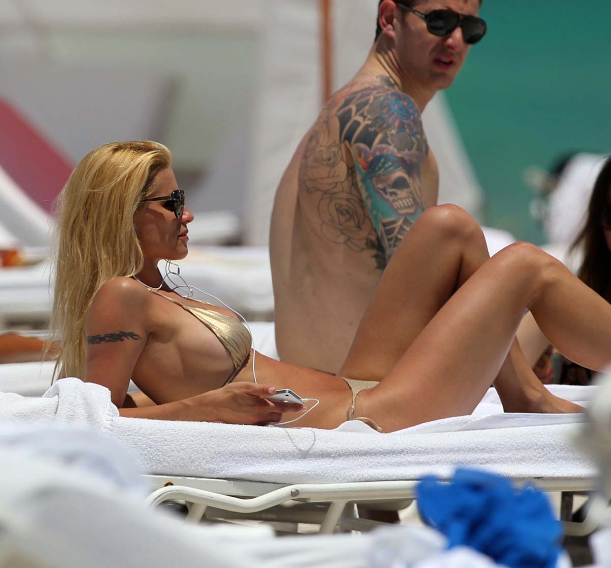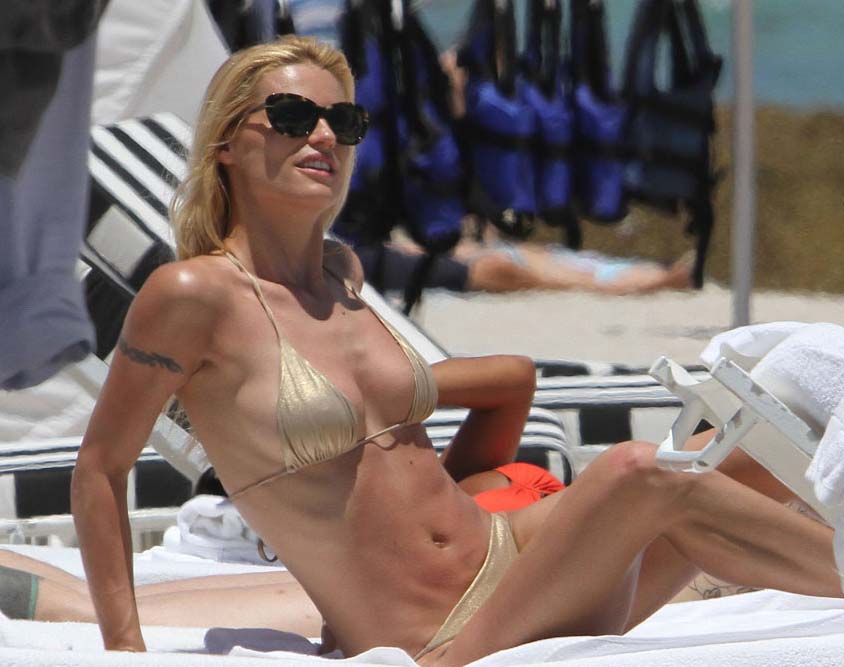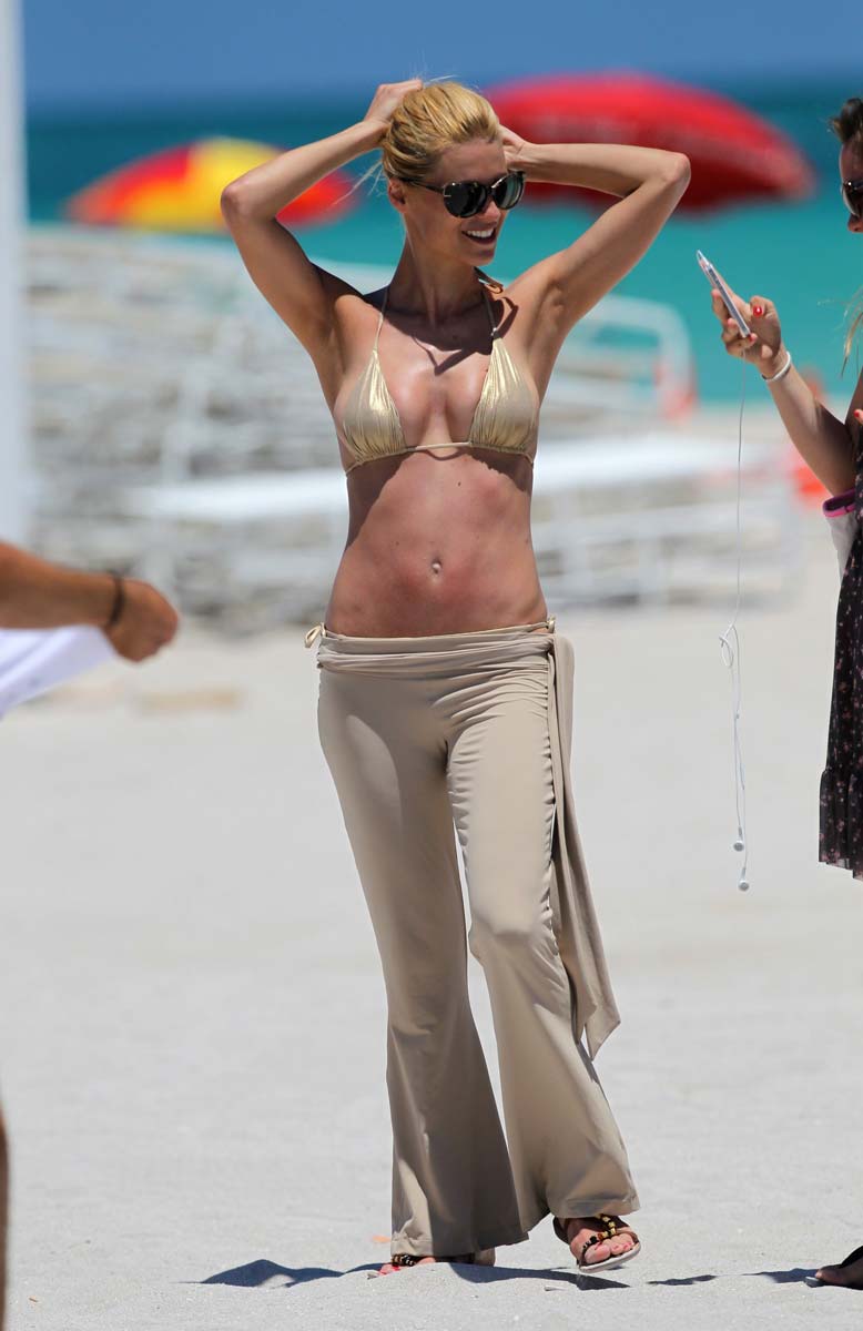 I have nothing left to say about these Michelle Hunziker bikini pictures. This is probably the millionth time that this hot chick has been caught at the beach in a bikini. I’m not complaining though, she’s one smart MILF. She’s one of the few who have figured out how to get on my site on a regular basis. Good work.