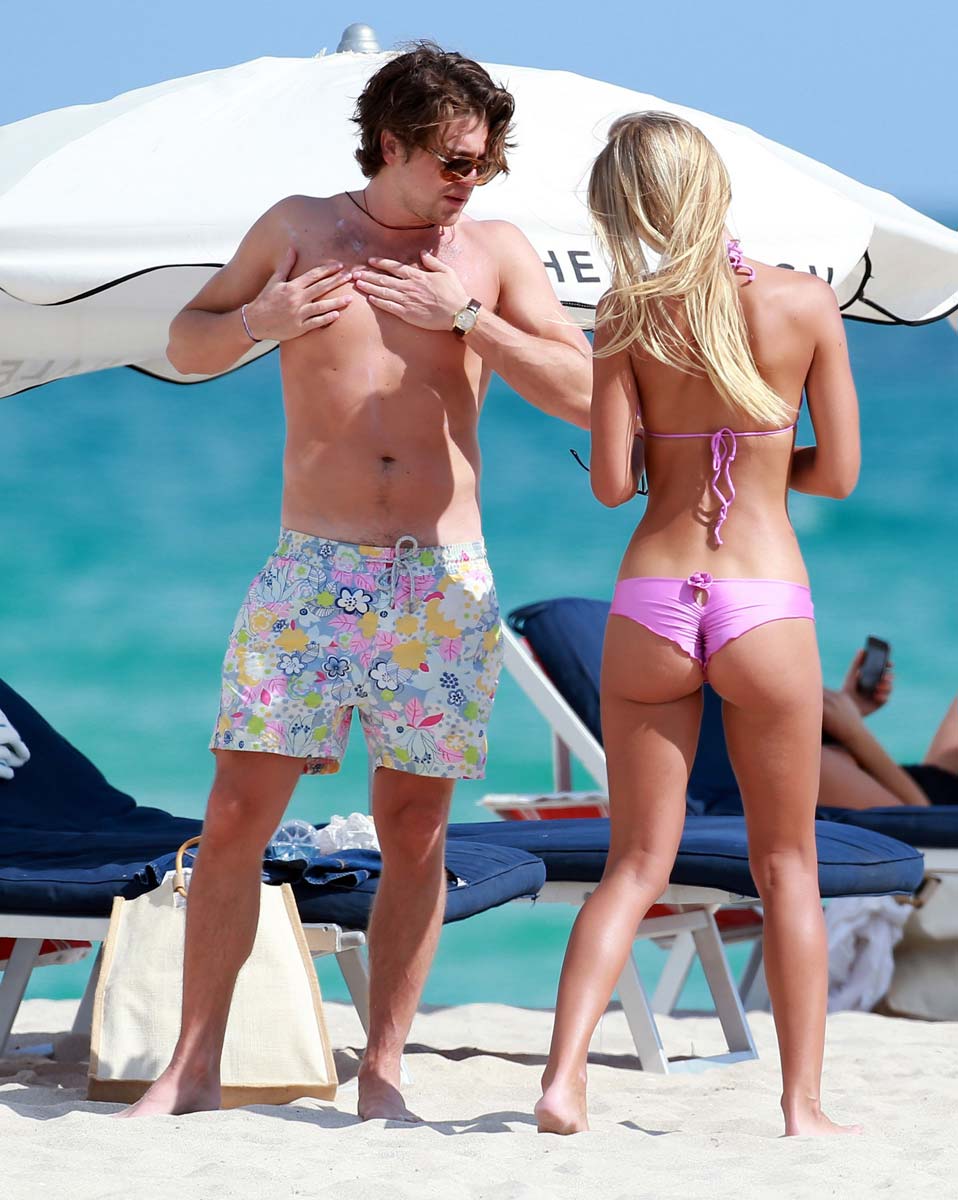 Am I supposed to know who this Petra Benova bird is, because I don’t. I’m not too upset about it, I forget things after a few drinks, but I like to keep track of all unknown hotties and this one seemed to slip through my fingers. Here’s Slovakian model Petra Benova at the beach with her British socialite boyfriend, the lucky bastard. She doesn’t have the best face, but what a booty. I’d have my hands all over that all day long, but he’s obviously got way more self-discipline than me. Lucky bastard.