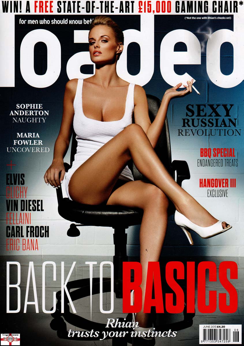 Here is sexy British glamour model Rhian Sugden topless showed off her talents for Loaded this month, and they got her to reenact Basic Instinct, which isn’t that original and is a little overplayed, but I’ll take it. Still, if you’re not gonna go all the way with the reenactment, what’s the point? Everybody knows Sharon Stone didn’t become famous just for sitting cross-legged in a chair. Enjoy the photos.