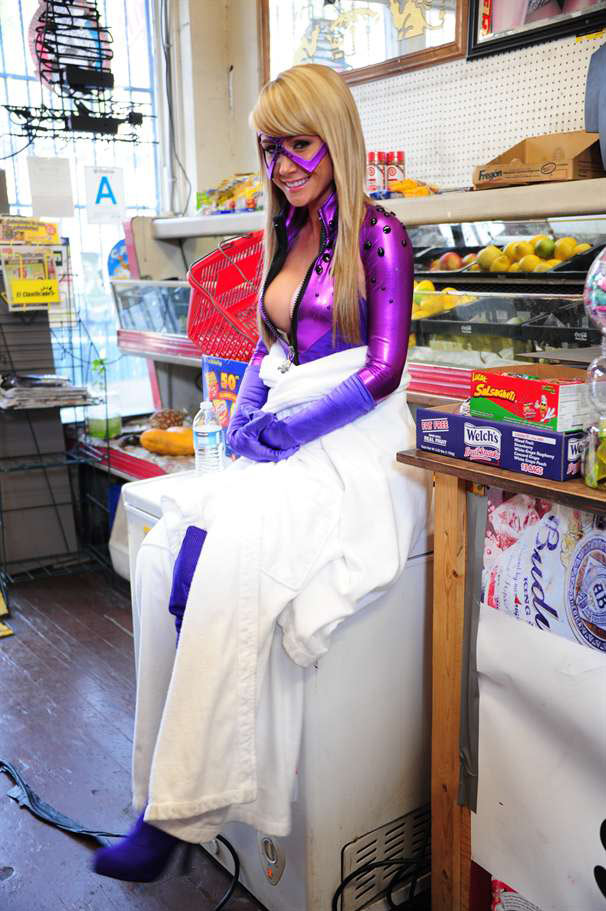 You know that I post pictures of hot Sara Jean Underwood every chance I get, she is hot and has the best boob job ever and the best thing is that she loves to shows them, so seeing her in this hot outfit with her big boobs bust out is a perfect treat. Here she is in a killer costume filming some show or something like that. Last time I put some pictures of Sara Jean Underwood in wonder woman costume, so I think this is the same thing. However, I really don’t care, everything is absolutely right when I can see those Sara Jean Underwood boobs exposed just for me…