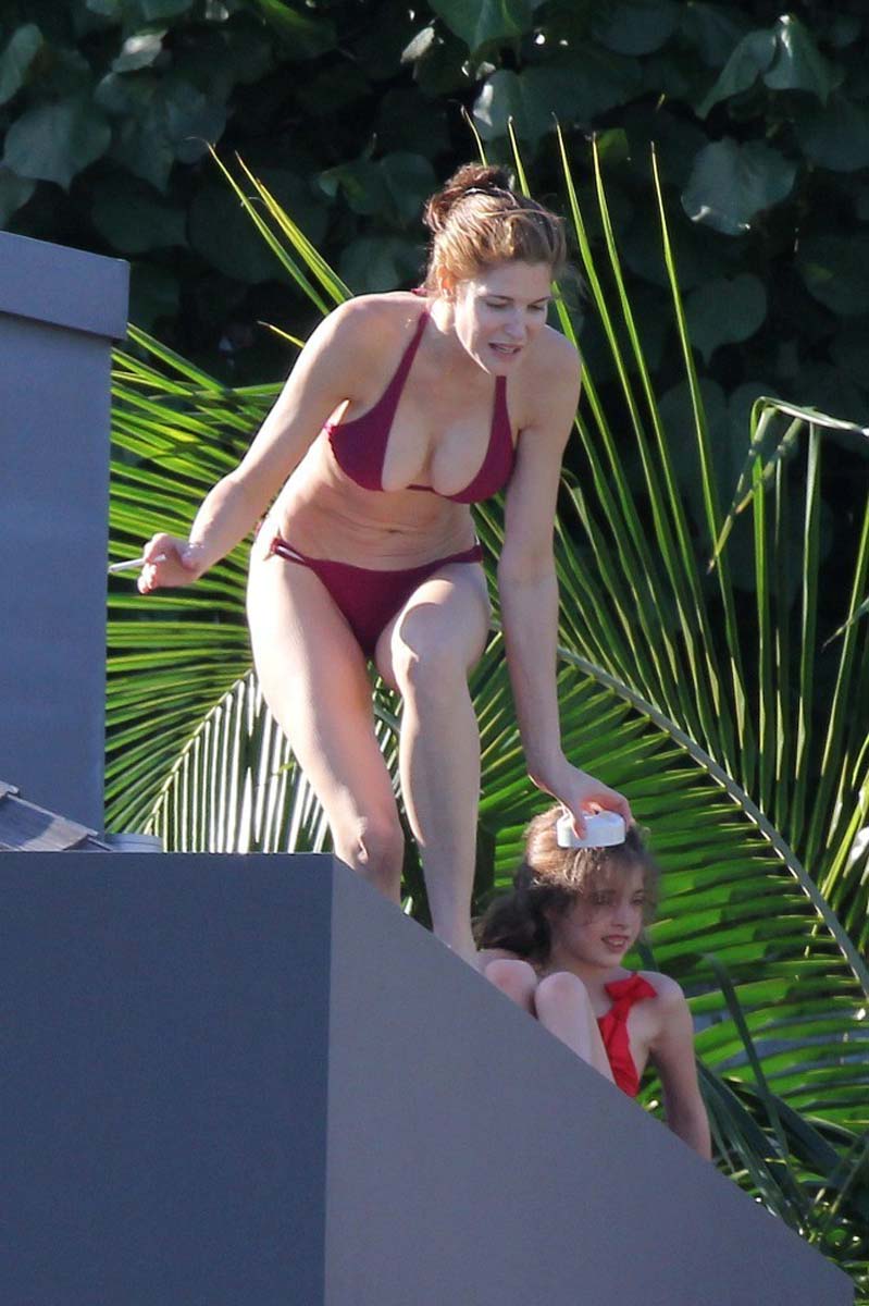 I wouldn’t have thought some shots of a mother in her late forties wearing a swimsuit would be all that hot, but I have to admit I kind of like these. Here are some Stephanie Seymour bikini pictures from her latest vacation. I can’t believe her body is still this tight, I guess that’s the former supermodel side coming through, her husband must be a very happy man. Her face is a little too chiseled for my liking but who is really looking at that? Enjoy.