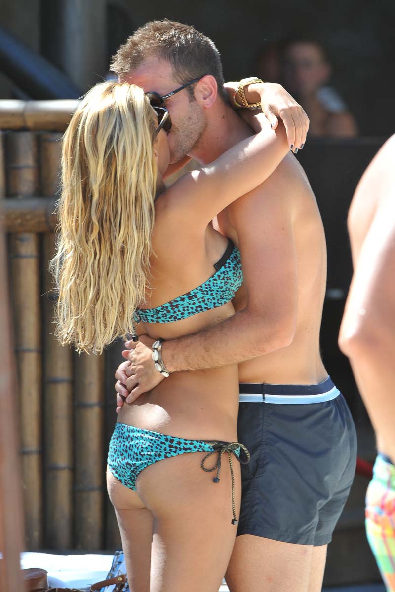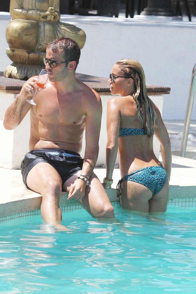 Here is soccer wife Sylvie Van der Vaart hanging out in the pool with her freaky Dutch international footballer husband. Not only is he a millionaire superstar athlete, but he gets to go up for headers with this hot piece any time he wants. It’s just not fair. At least we have some nice shots of this hot piece of ass to enjoy…