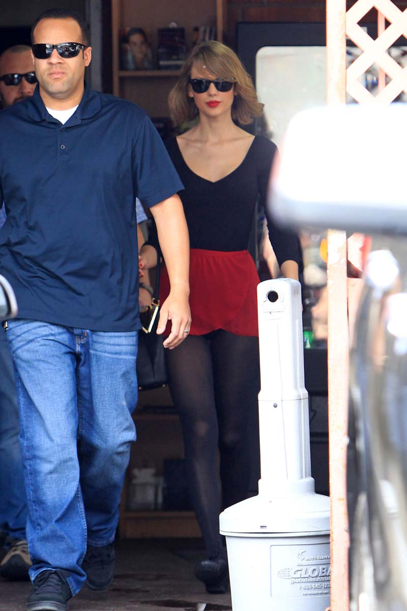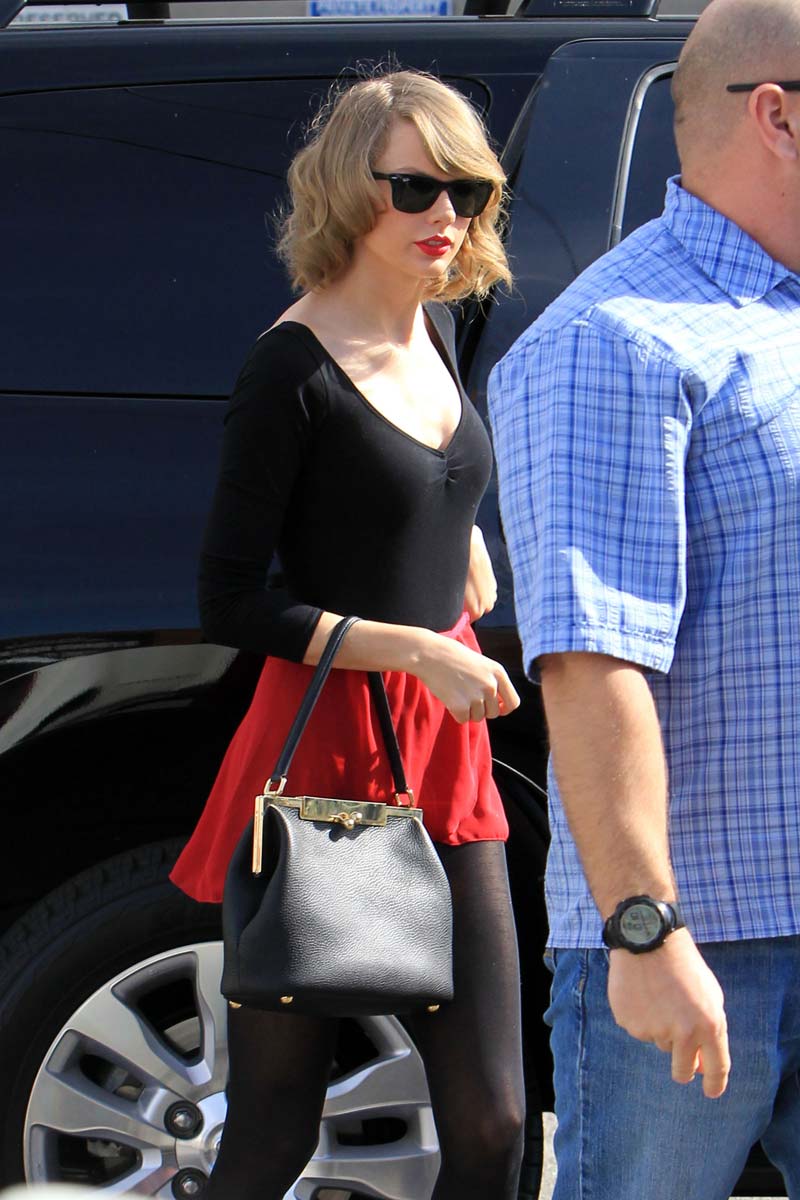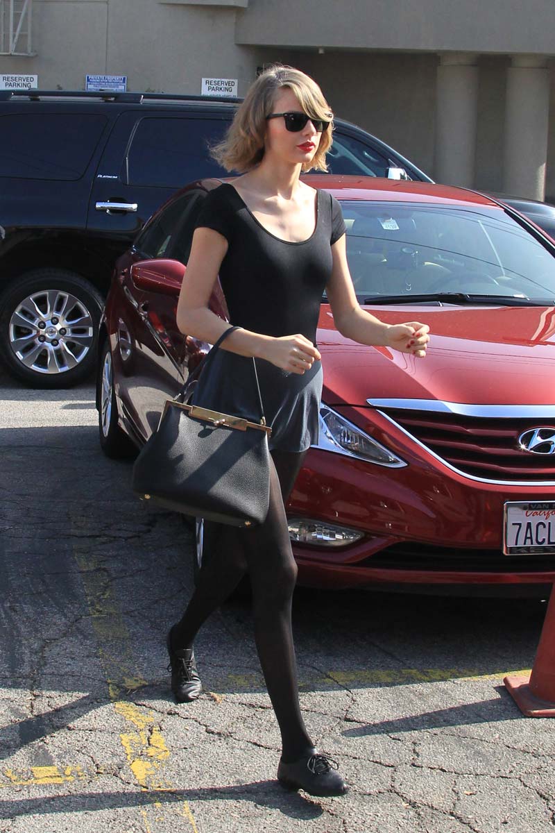 Here’s the uber cute Taylor Swift at a dance studio session looking like a sexy little minx and dropping everyone’s jaw (especially mine) with her in few skimpy dance outfits, sexy little ballerina outfits! Here’s hoping she keeps hitting the studio because her outfits are doing one hell of a job of showing off her sexy stems and making her look way bustier than she really is. And making me drool as well while showing off a ton of sexy leg action and curves. Alright, enough gushing; enjoy the photos!